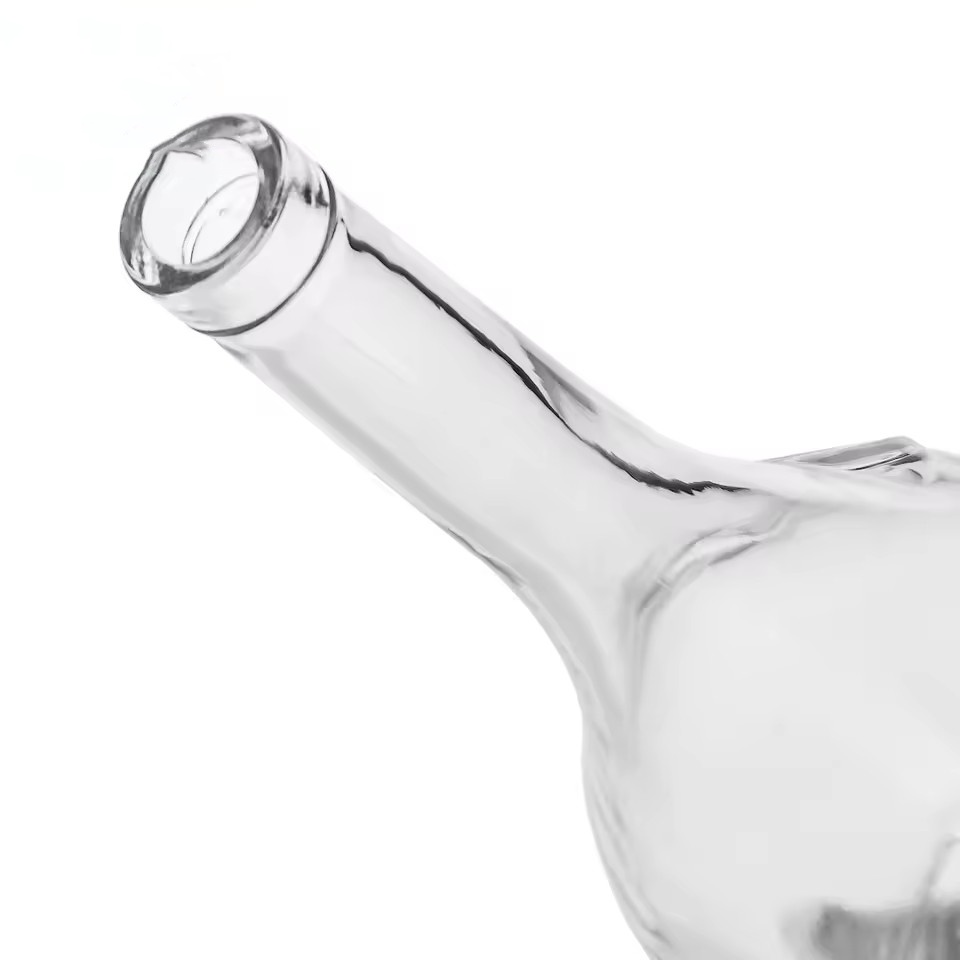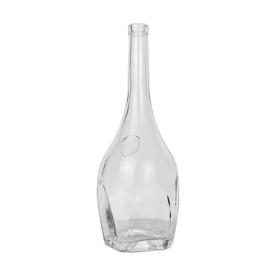 | Product: | 1000ml clear Super Flint Glass Curvilinear Glass Bottle With a Square Base and Mid-Section Circumferential Indentation Design |