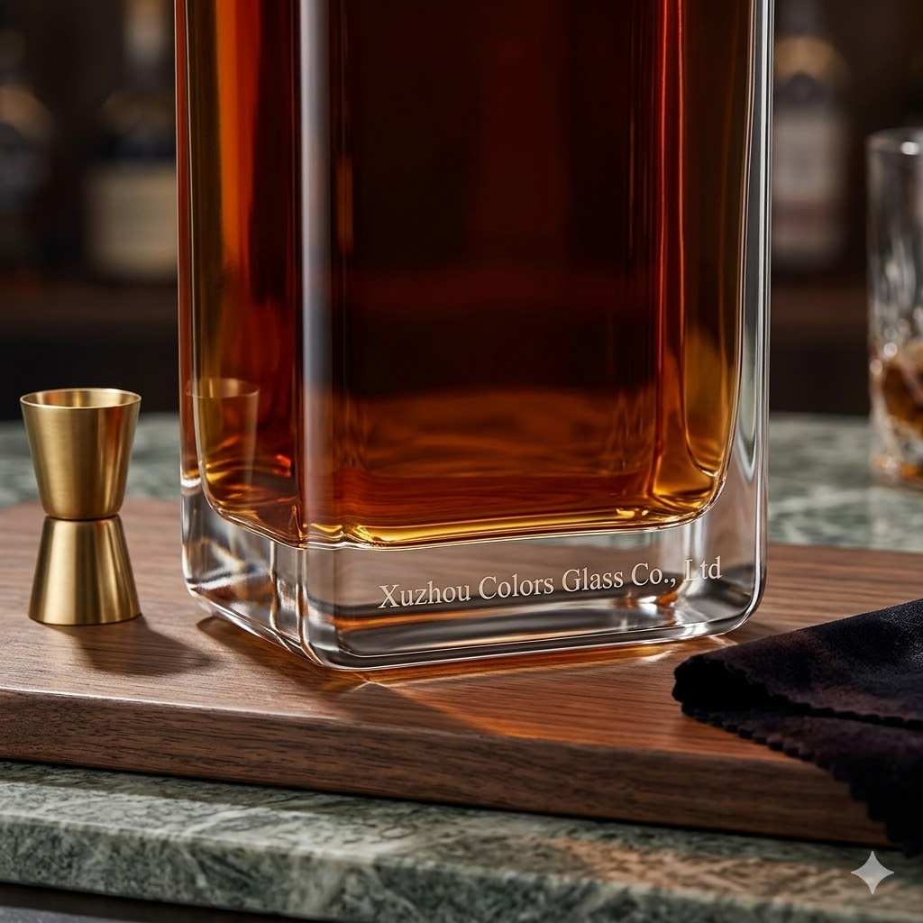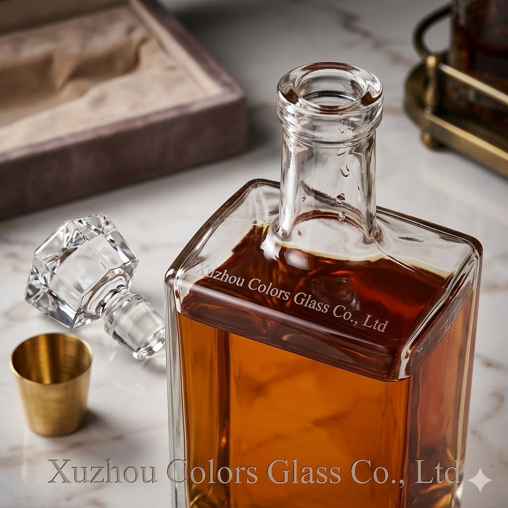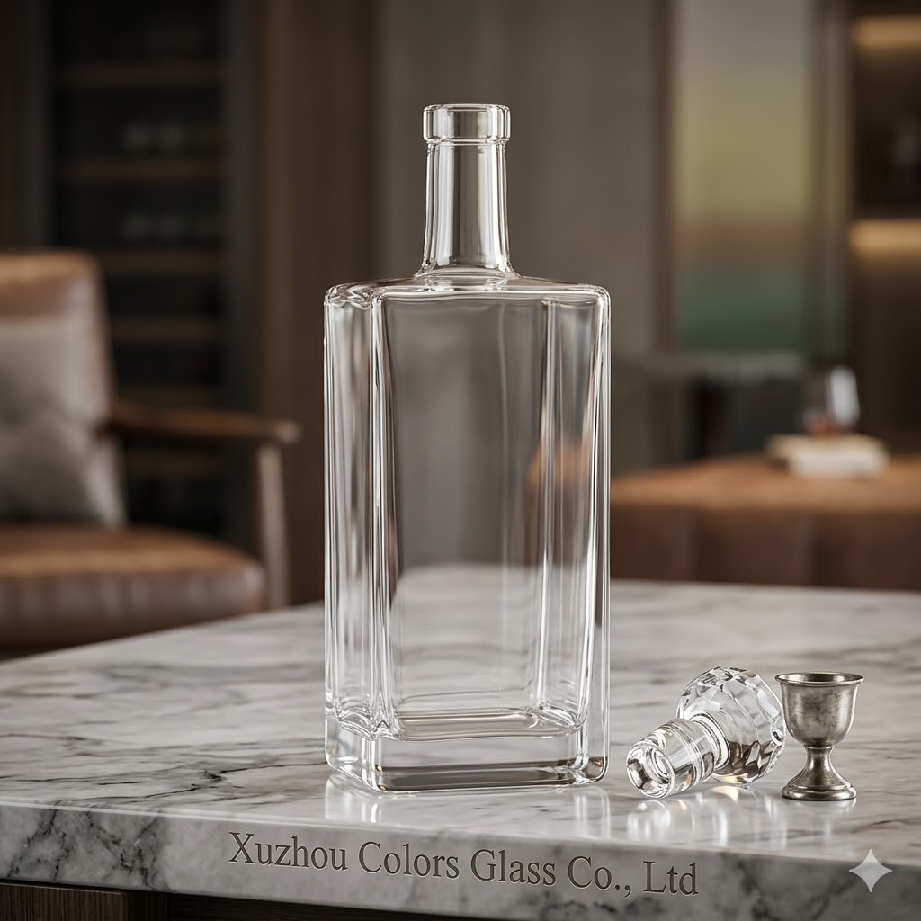 This 500ml flat square glass liquor bottle is designed for modern spirits packaging, combining a compact size with a strong geometric shape.