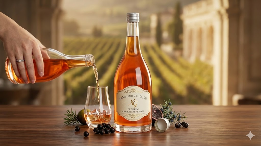 The bottle supports cork closures and multiple decoration techniques, making it ideal for custom branding and premium liquor packaging.