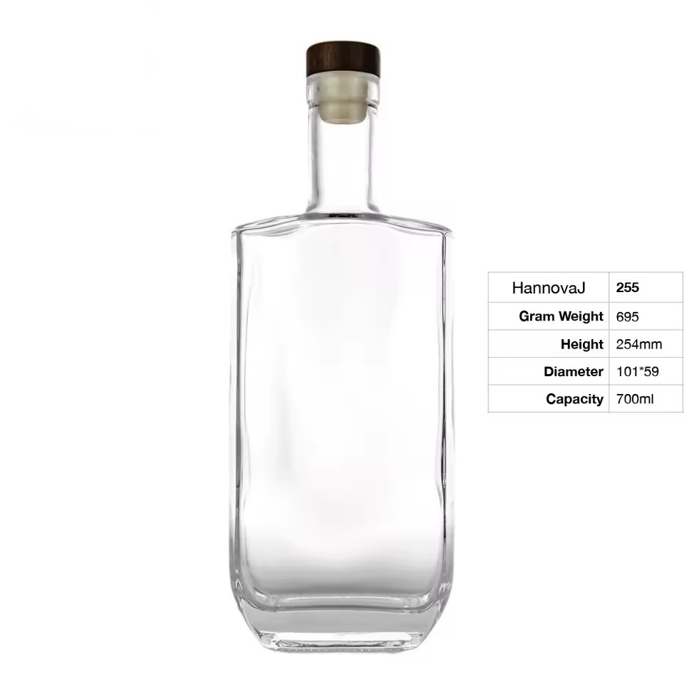 | Product: | Custom Design 70cl Flat Square Glass Bottle 700ml Thick Bottom Whiskey Vodka Bottle With Wooden Cork or Glass Stopper |