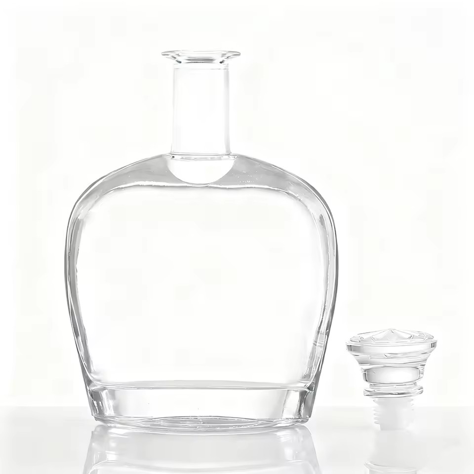 HOME PRODUCT Glass Bottles Glass Spirit Bottle Customised 700ml/750ml Flat Shape Glass Bottle with Sand Screen Printing Rubber Seal for Red Wine Tequila and Brandy