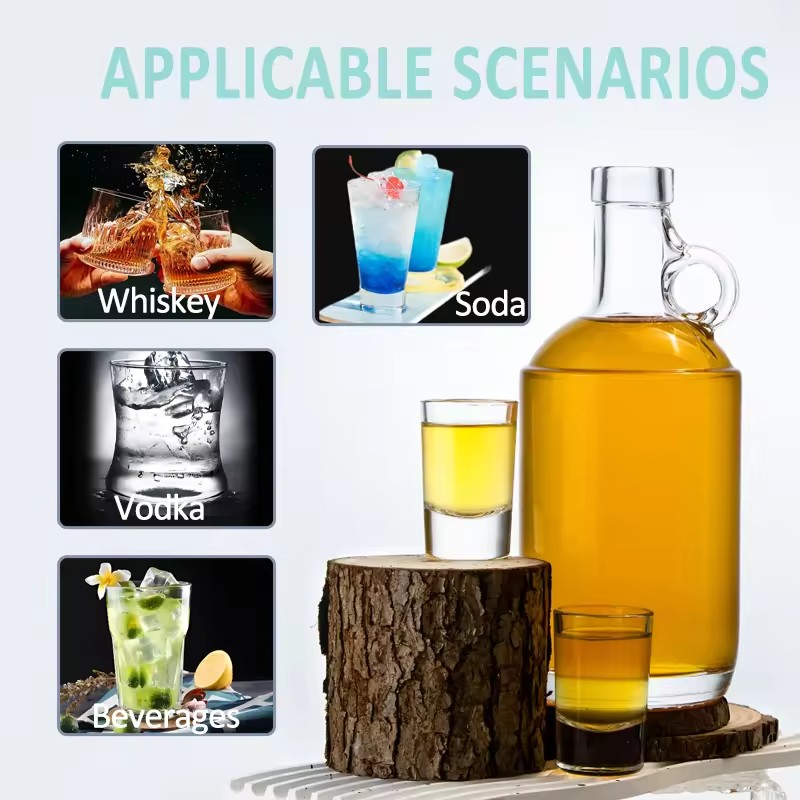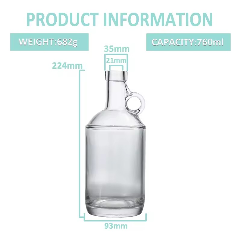 | Product: | Customized Moonshine Jug 750ml Spirit Whisky Vodka Brandy Liquor Clear Glass Bottle With Single Finger Pistol Grip Handle |