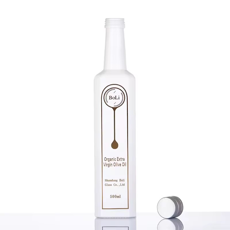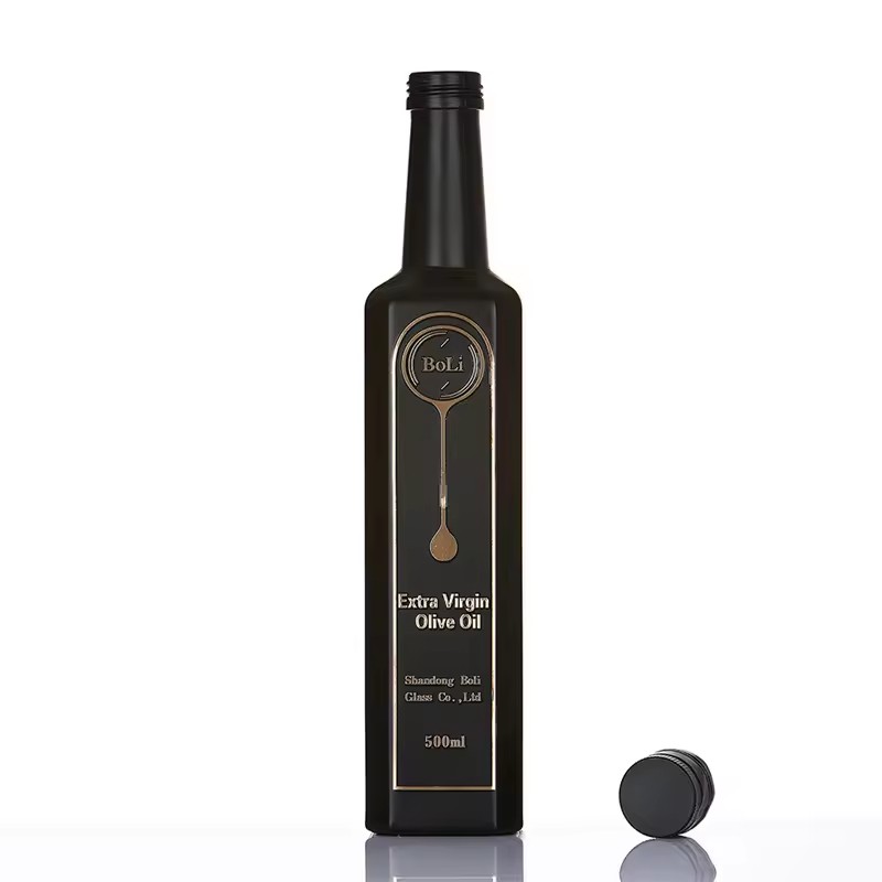 Empty Square Matte Black White Glass Bottle 500ml Olive Oil Gin Liquor Liquid Container Bottle With Cap Screen Printing |