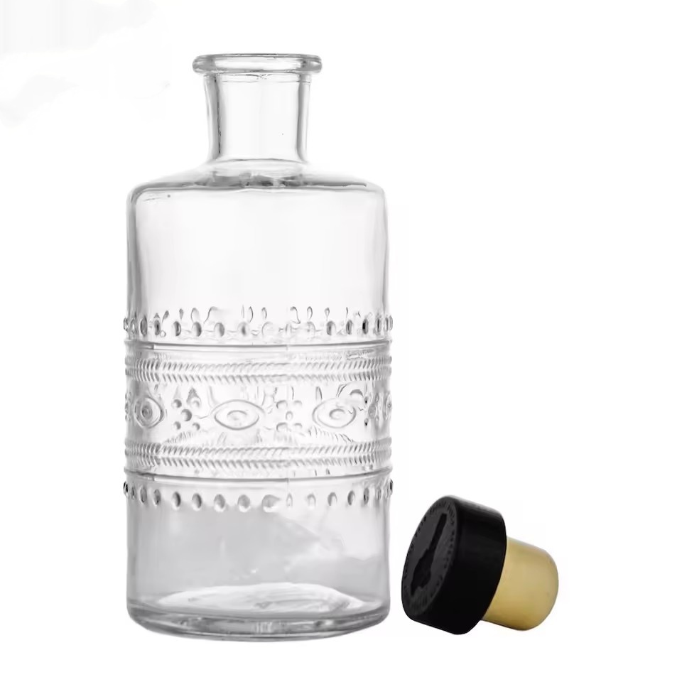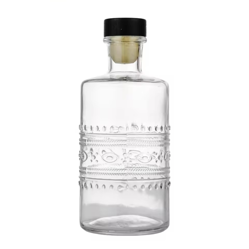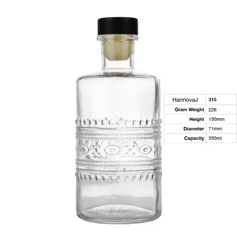 | Product: | Factory Custom 350ml Clear Embossed Pattern Glass Bottle for Whiskey Rum Gin Vodka Liquor Spirit with T-Cork Stopper |