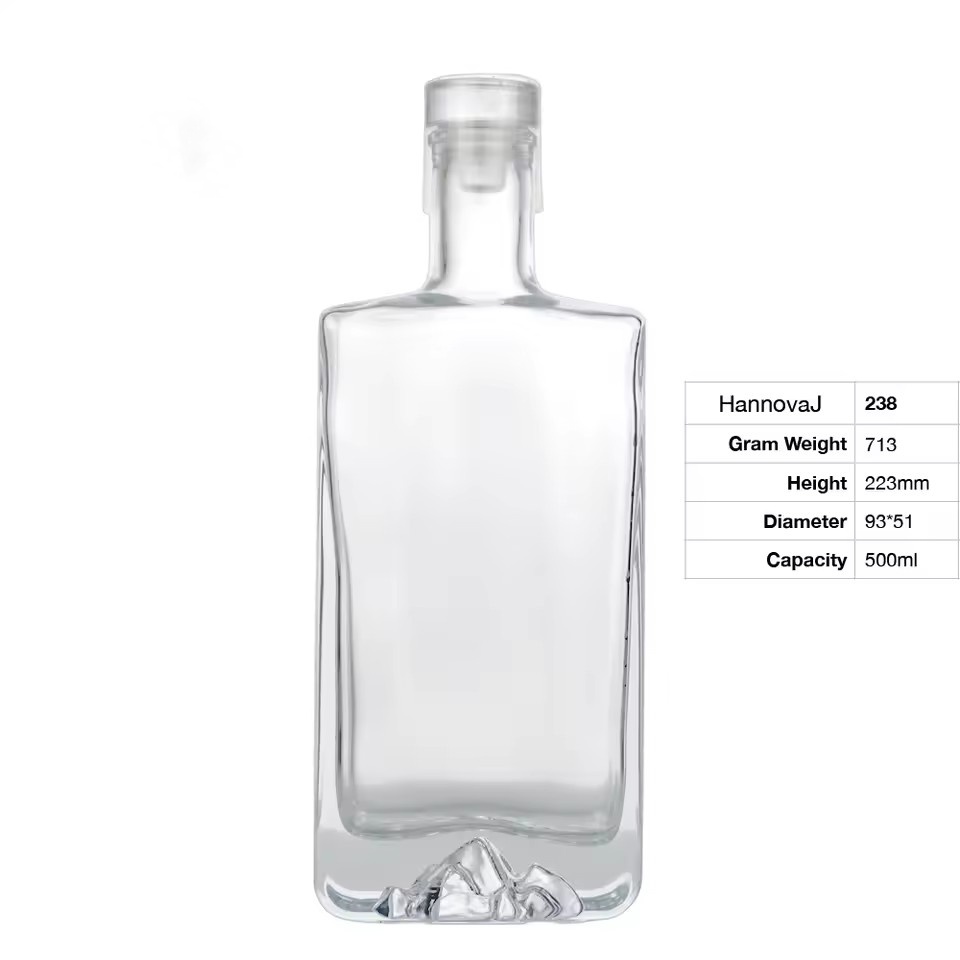 | Product: | Factory Manufactured Best Quality 500ml Glass Stopper Mountain Bottom Super Flint Glass Bottles for Gin Rum Whisky |