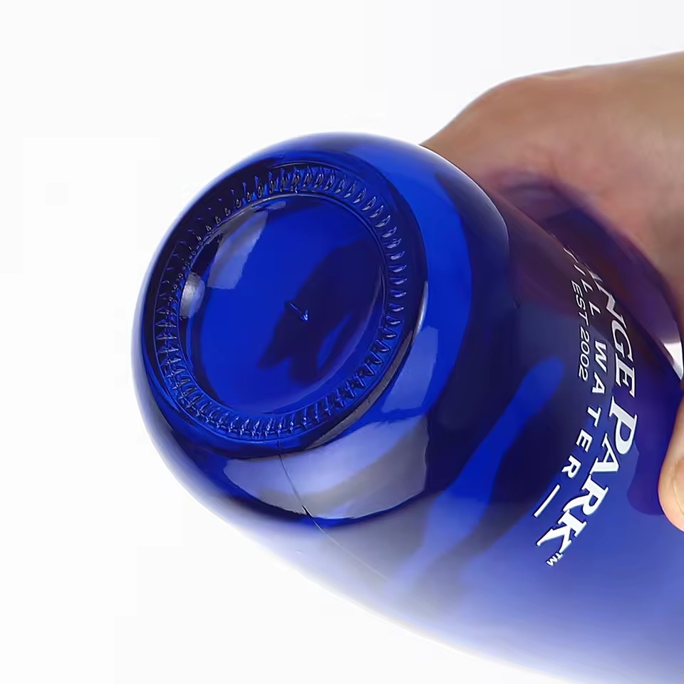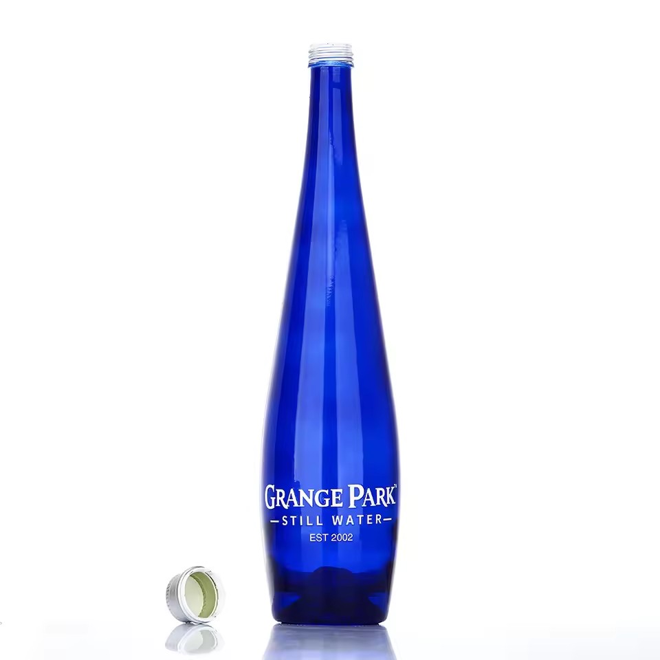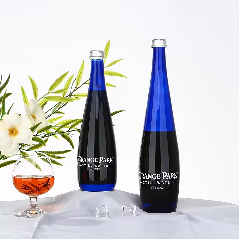 Factory Produce 330ml 500ml Custom Blue Color Drop Shape Empty Super Flint Glass Water Soda Beverage Glass Bottle with Lid |