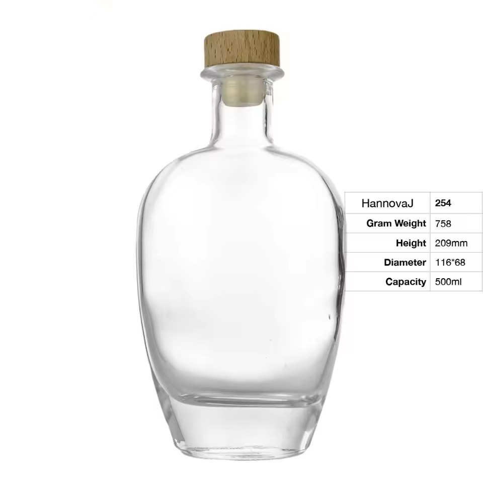 | Product: | Factory wholesale 500ml Flat Round Goose Oval Top Thick Bottom Thin Vodka Rum Gin Gin Whiskey Glass Bottle with Cork Stopper |