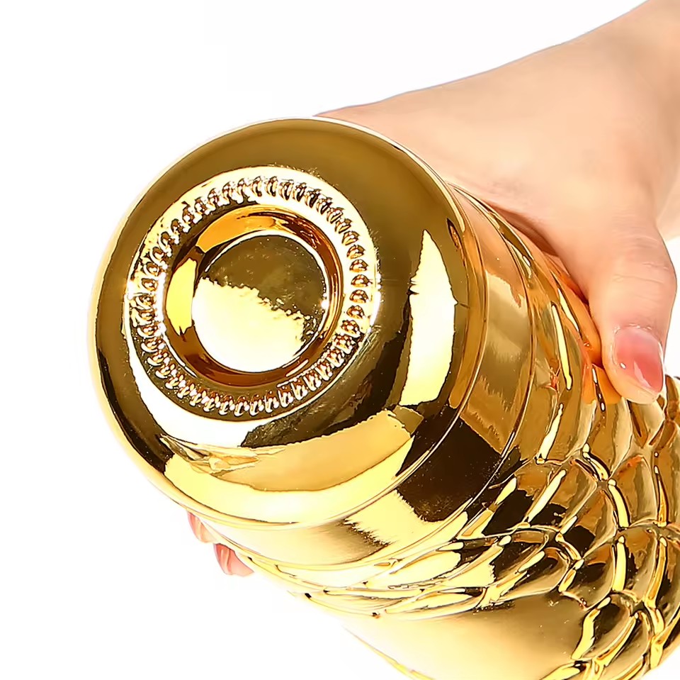 | Product: | Gilded Luxury Embossed Fish-Scale Patterns Customized Golden Round Slim Empty 500ml 750ml Glass Spirits Bottle |