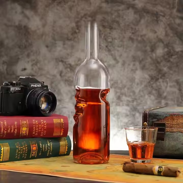| Product: | Handmade Clear Glass Flat Shape Bottles with Rubber Stopper Lids for Vodka Whiskey Brandy Tequila and Energy Drinks |