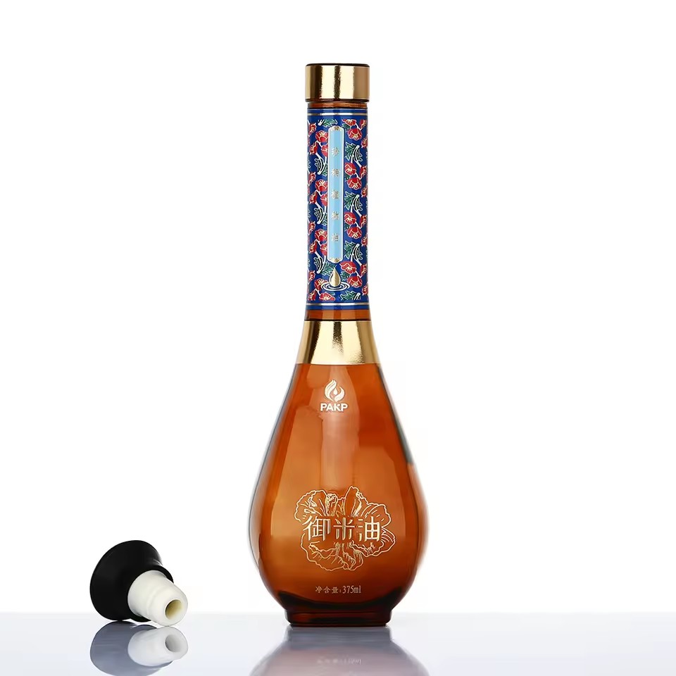 High-End Brown Transparent Long Neck Small Bottle With Luxury Customized Printing 330ml 500ml 750ml Glass Oil Bottle |