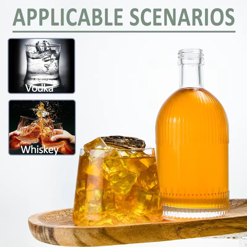 | Product: | Hot Selling 500ml Unique Vertical Stripe Beverage Glass Bottle Liquor Packaging Bottle with Screw Cap |