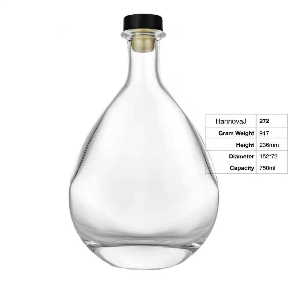 | Product: | Modern 750ml Teardrop Shape Flat Bottle for Premium Gin Vodka Tequila Custom Logo Empty Spirit Liquor Glass Bottle With Cork |