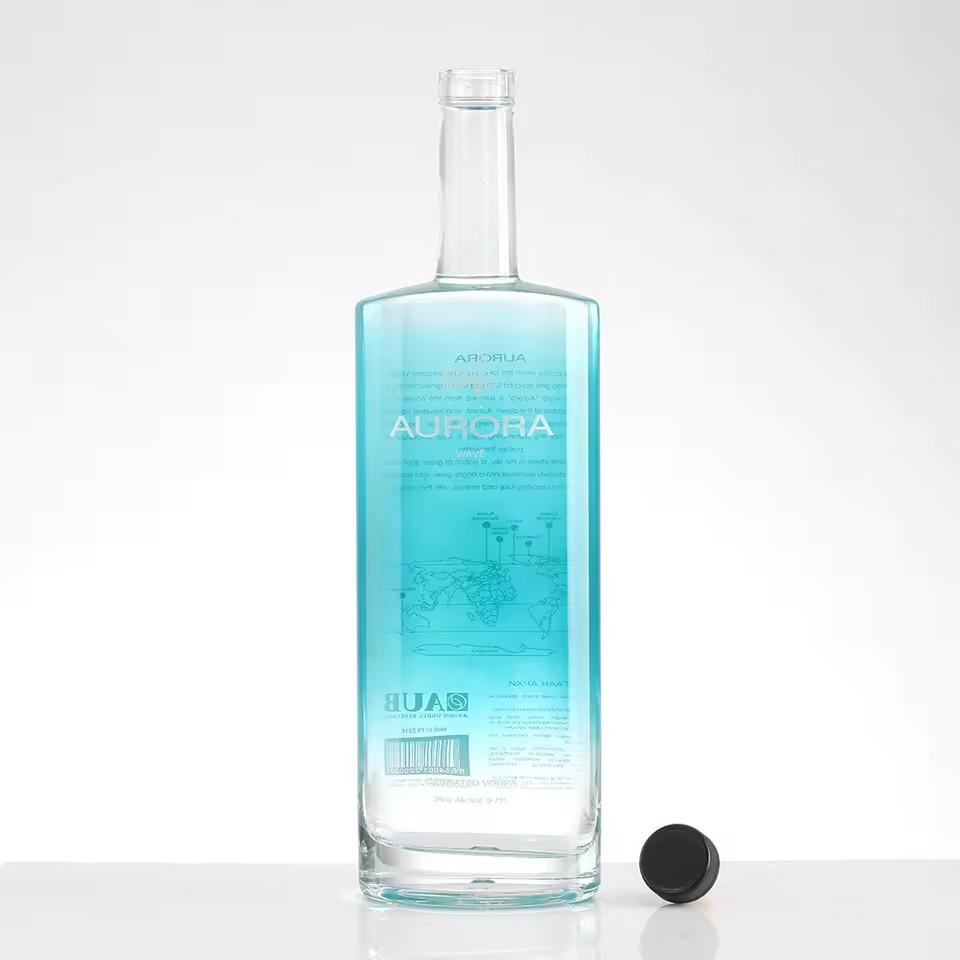 | Product: | Quiet Luxury Blue Horizon Customized Transparent Empty Flat 500ml 750ml Glass Vodka Bottle for High-End Spirits |
