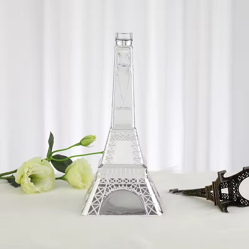 | Product: | Spirit Wine Glass Bottle Embossed Electroplated Silver Liquor Vodka Bottle 500ml Eiffel Tower Shape Glass Bottle |