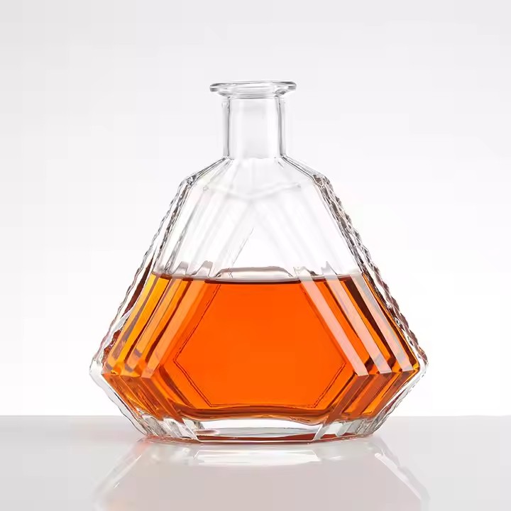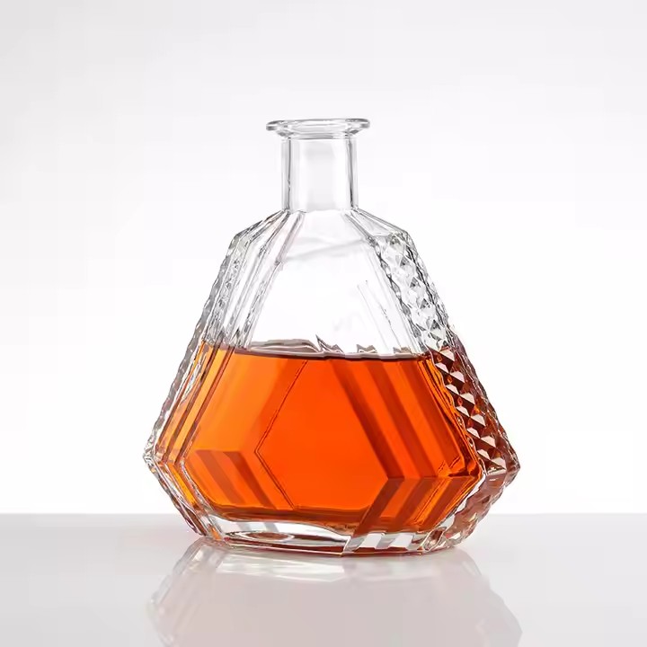 | Product: | Unique Triangle Shape Embossed Shoulder Spirits Glass Bottles XO Brandy Bottle Glass Bottle with Crown Cap |