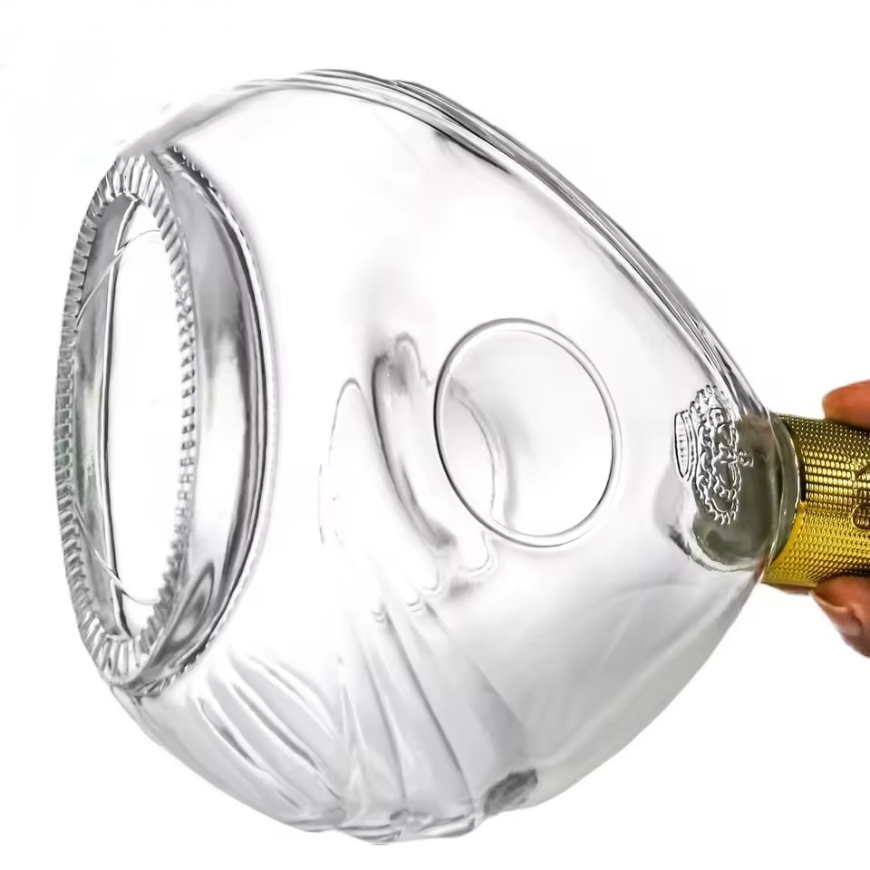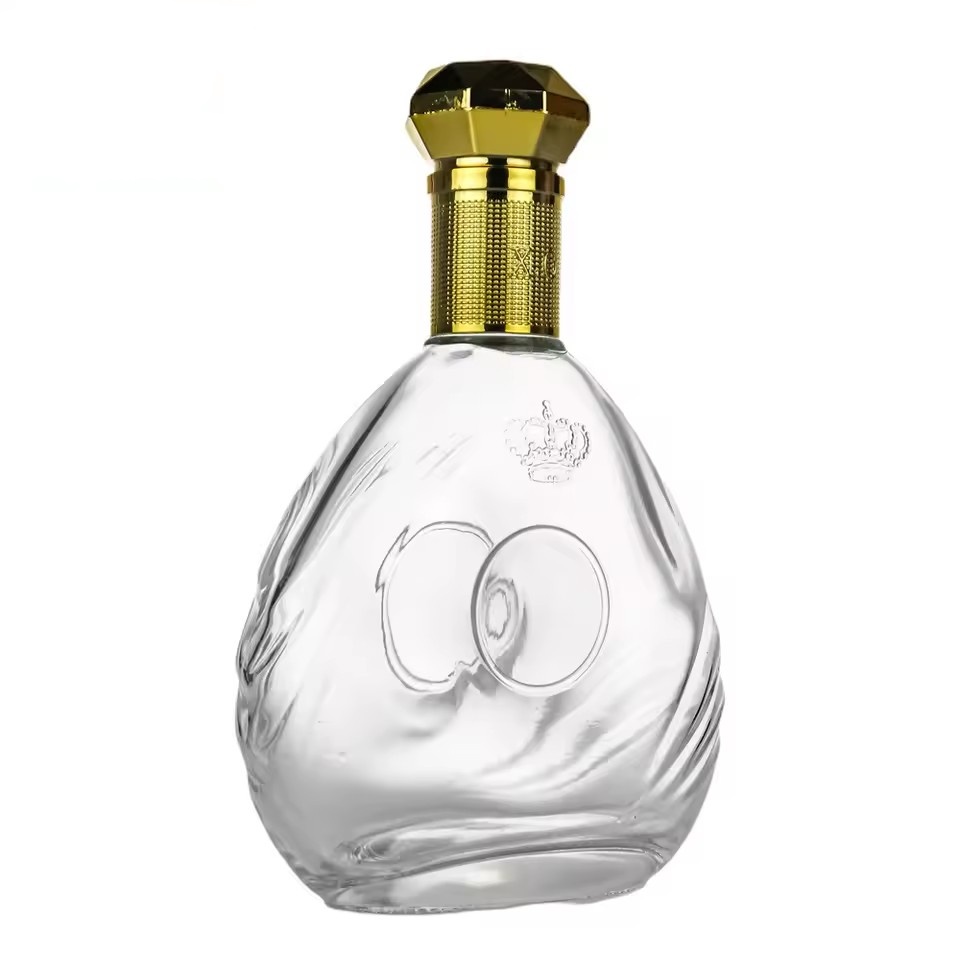 | Product: | Wholesale 700ml Ornate Flat Round Embossed Crown Bottle for XO Cognac Brandy with Luxury Gold Stopper Empty Spirit Glass Bottle |