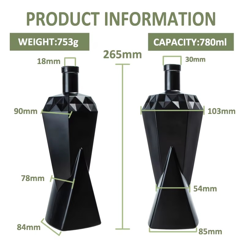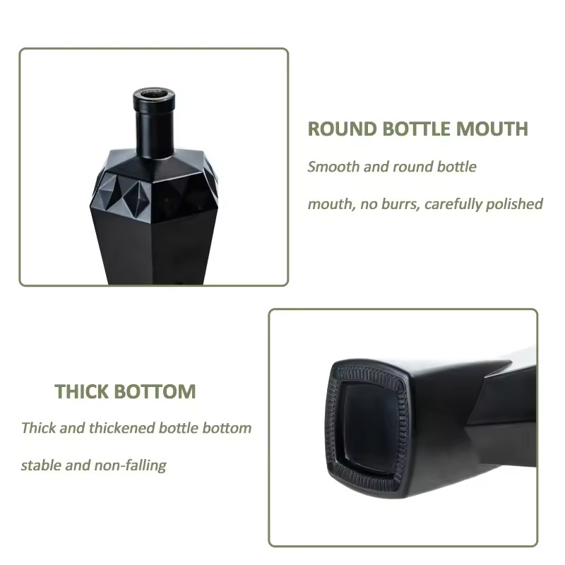 | Product: | Wholesale 750ml Glossy Matte Black Painted Glass Liquor Bottle Premium Tequila Mezcal Spirit Bottles |