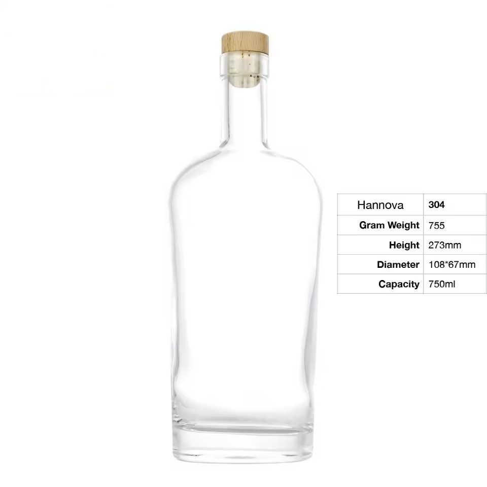 | Product: | Wholesale 750ml Tall Nordic Style Flat Oval Glass Bottle for Luxury Gin Vodka and Tequila with a Wooden Cork Top |