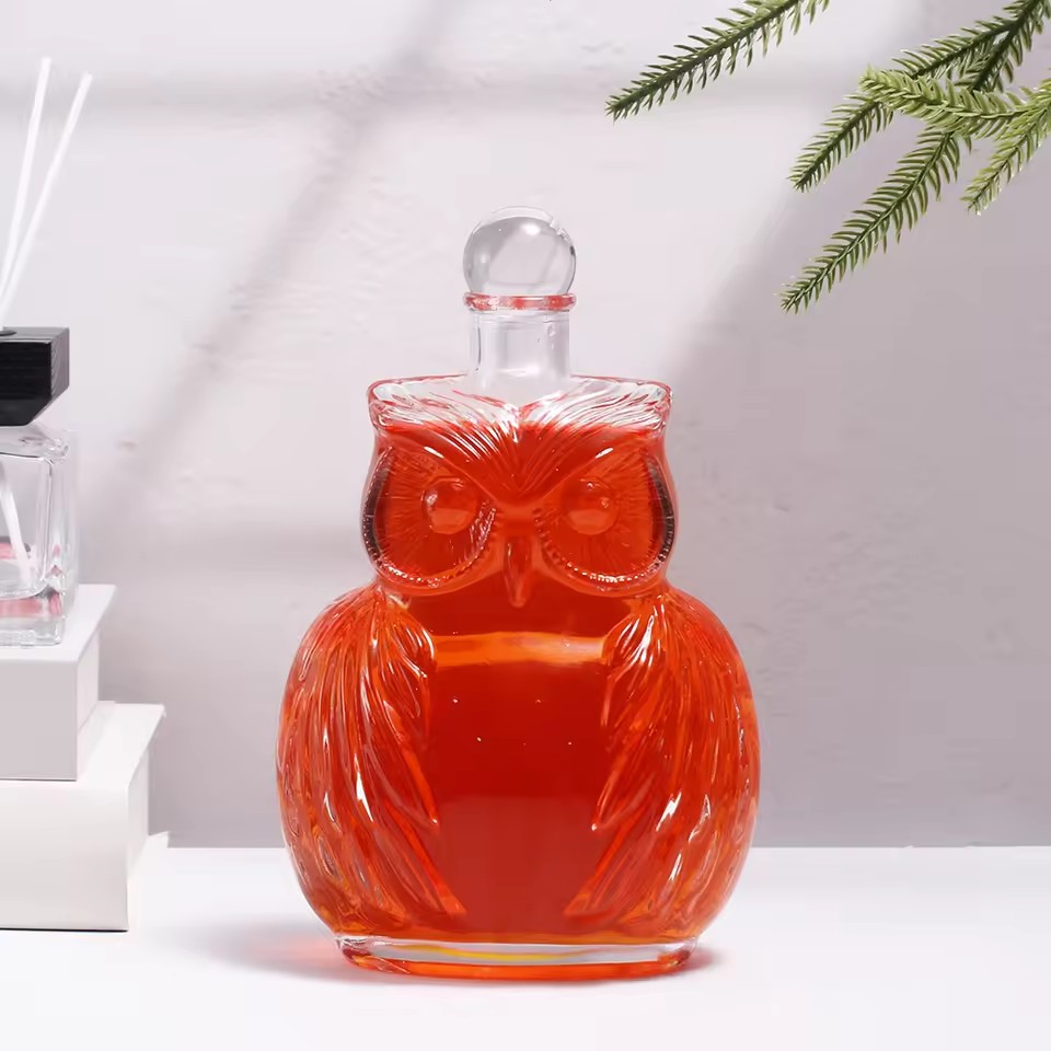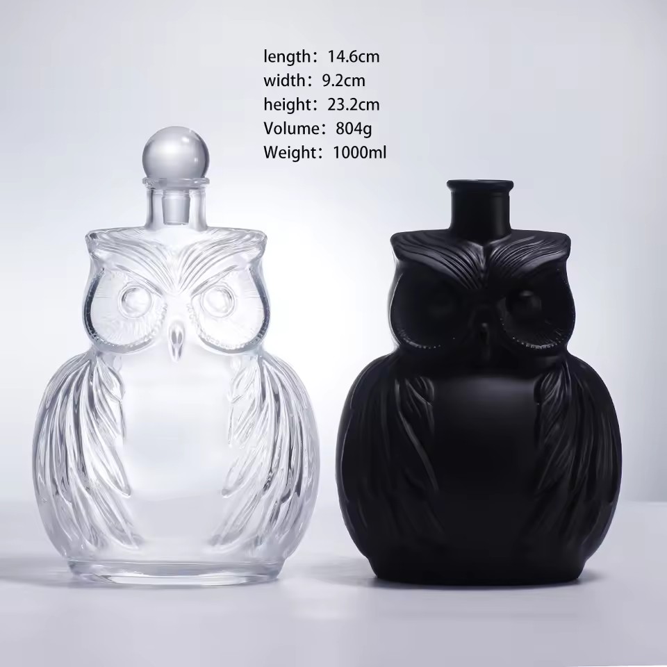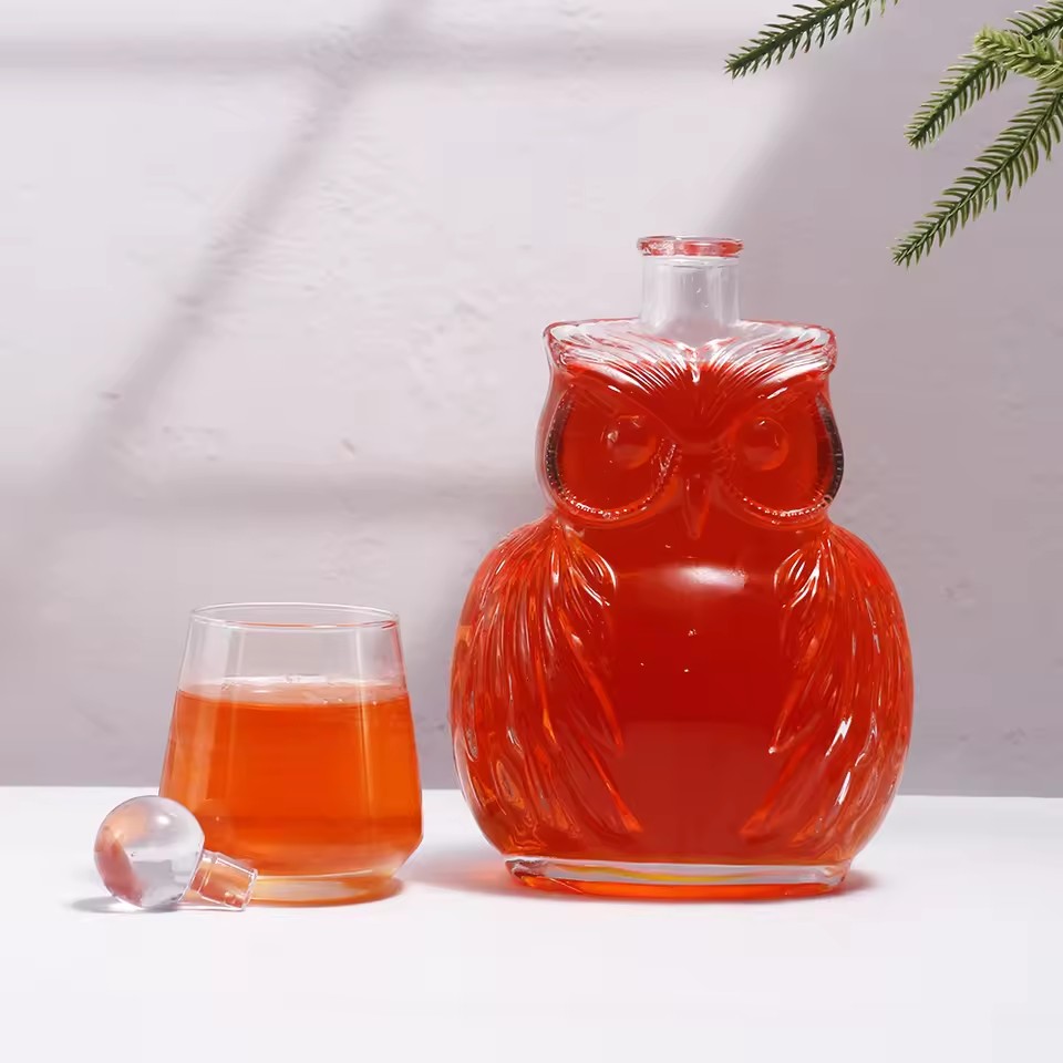 | Product: | Wholesale of Customized 1000ml Owl Shaped Glass Bottles for Tequila and Brandy sealed with Glass Stoppers for Gatherings |