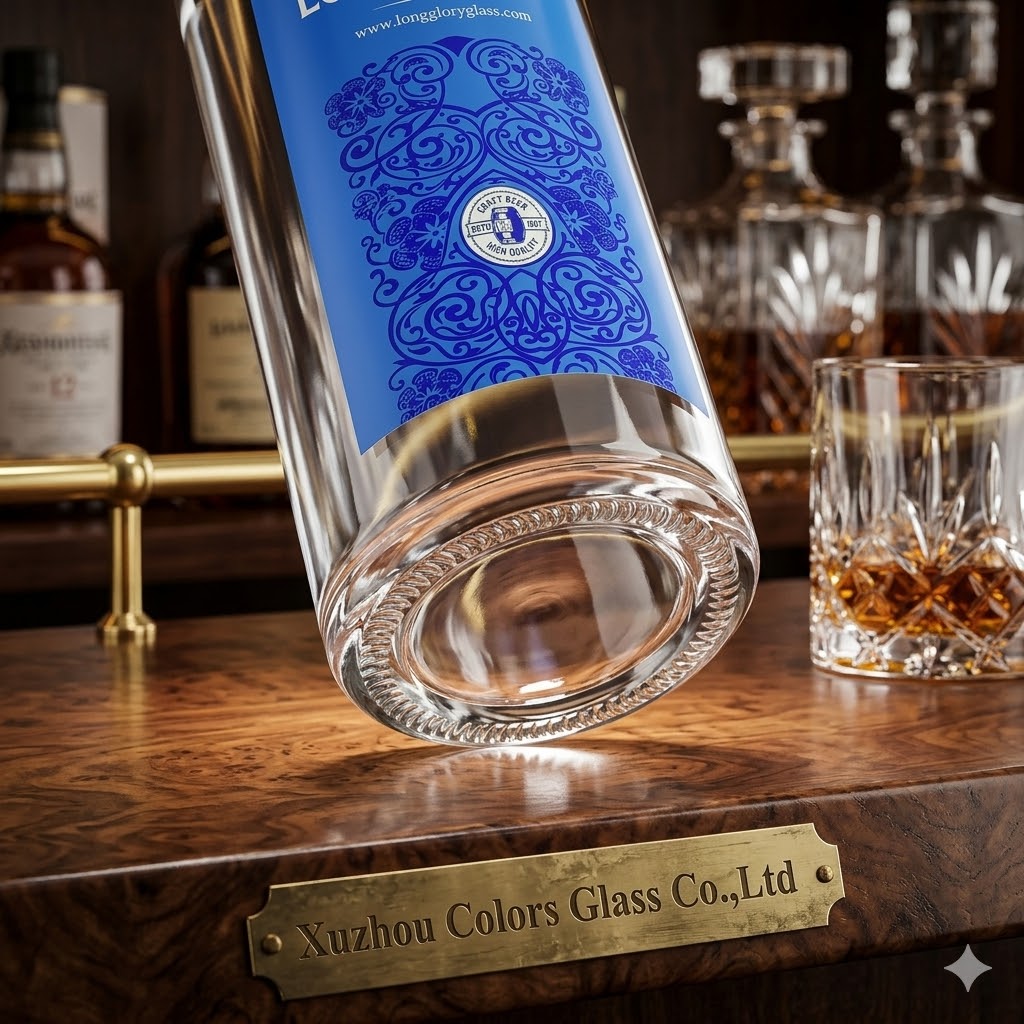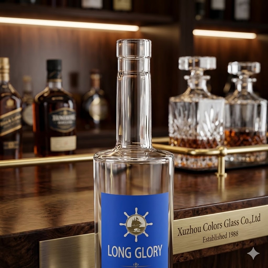These custom glass liquor bottles are available in 500ml, 700ml and 750ml, designed for premium spirits packaging including whisky, vodka, gin, rum and brandy.