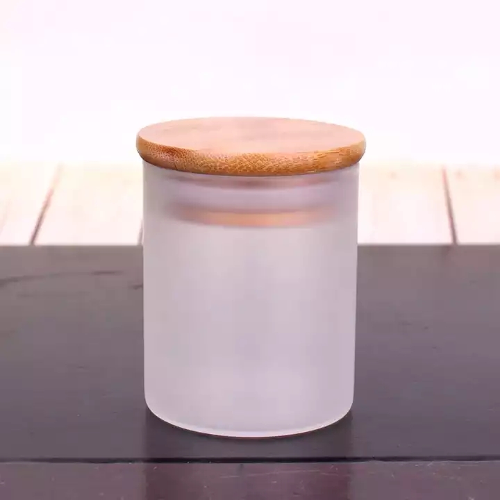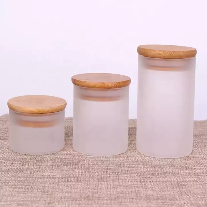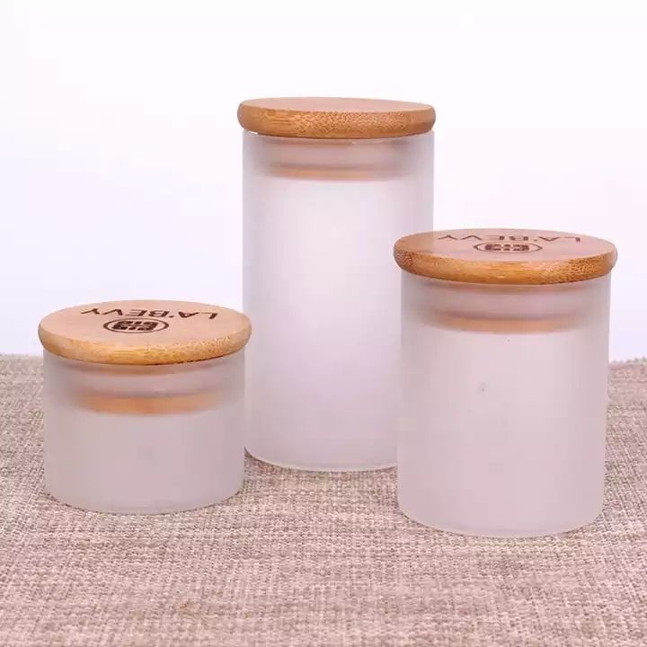 empty 3oz borosilicate glass round soy candle frosted jar with bamboo lid |