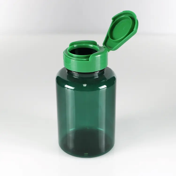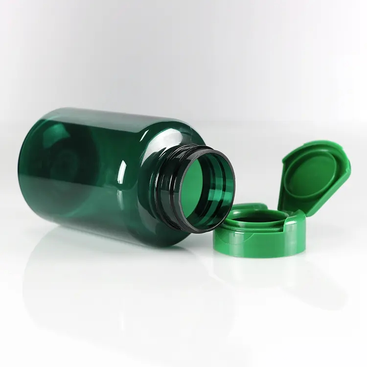 Empty Round green Pe Capsules Tablets Plastic Bottle 60ml 80ml Pill Bottle With Easy Pull Off Lid/flip Over Caps For Medicine |
