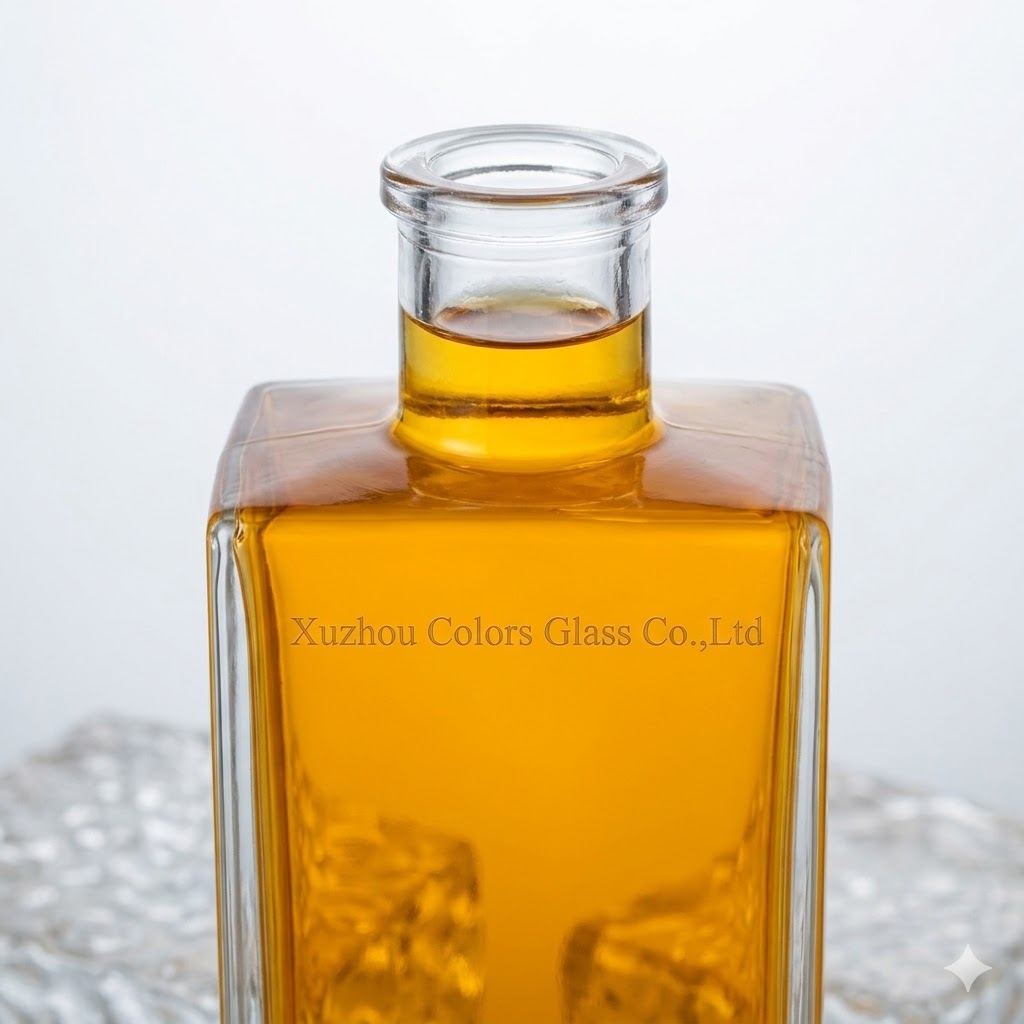 This 500ml unique square brandy glass bottle is designed for premium spirits packaging, combining a distinctive shape with high clarity super flint glass.