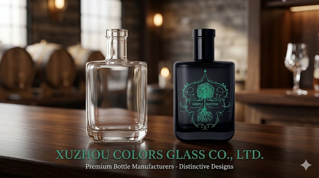 Distinctive square design combined with custom branding helps create a strong and recognizable spirits brand.