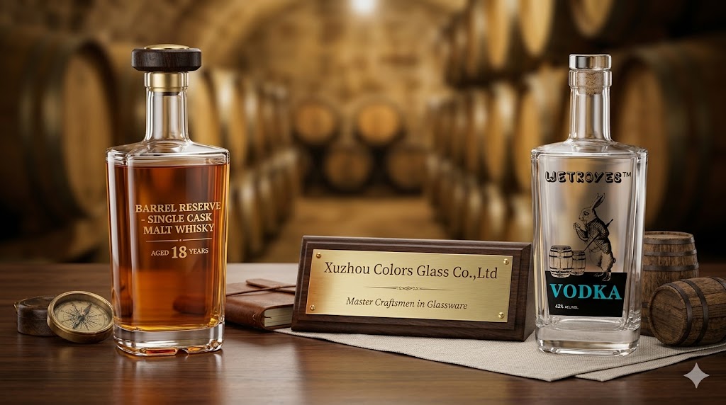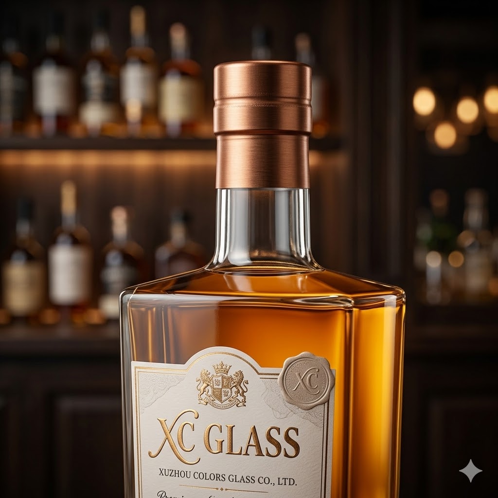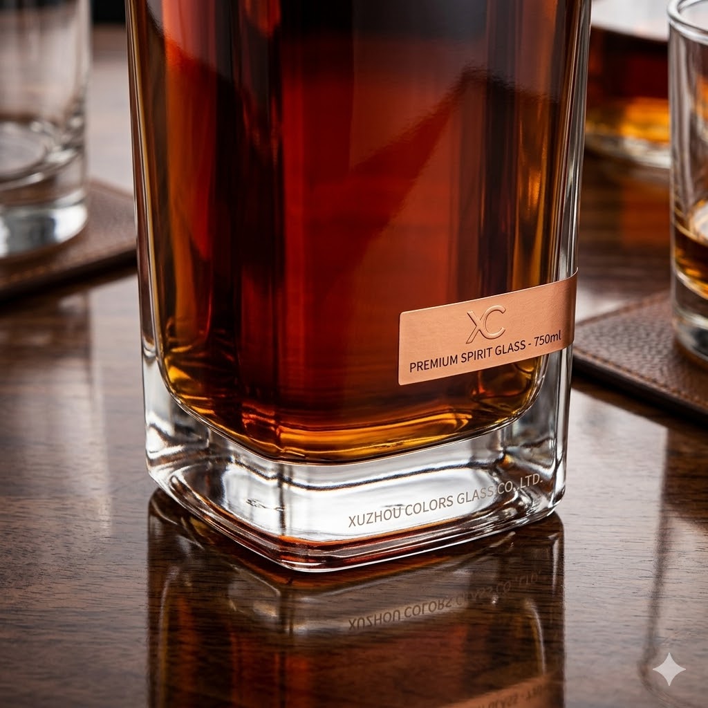 Crystal clarity combined with custom branding creates a premium and highly recognizable spirits product.