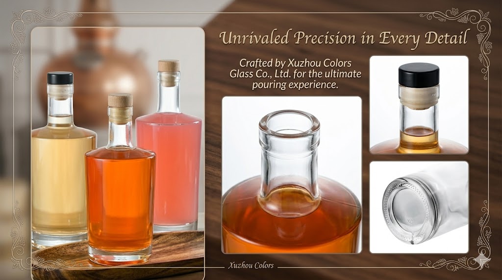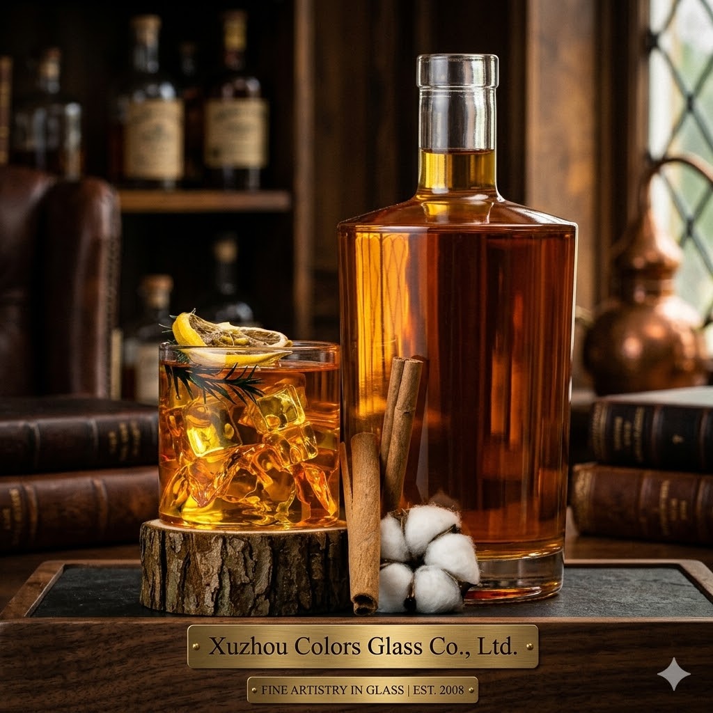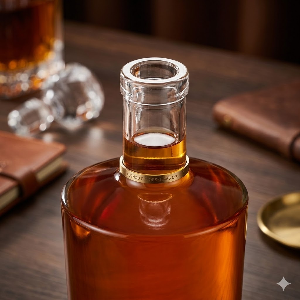 This 750ml flat shoulder glass liquor bottle is designed for modern spirits packaging, combining a clean silhouette with strong branding potential.