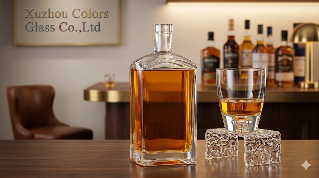 This 750ml square glass liquor bottle is designed for modern spirits packaging, offering a clean geometric shape that enhances brand visibility.