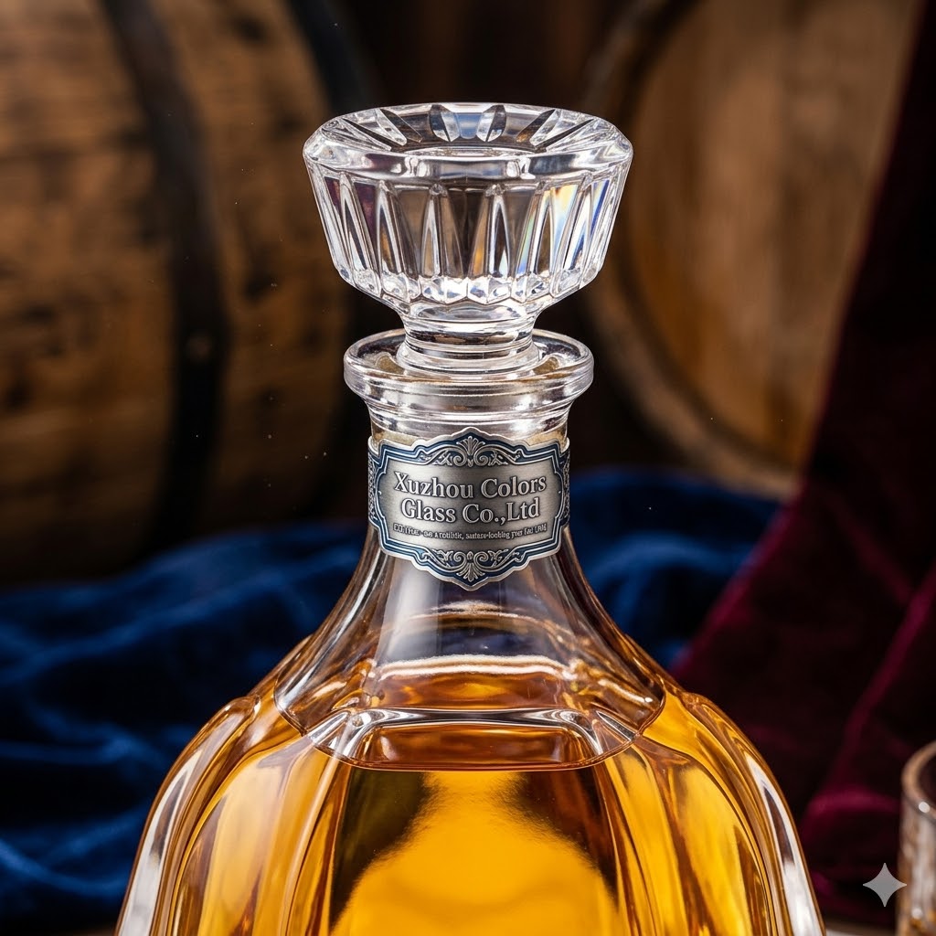 Made from high-quality flint or super flint glass, it offers excellent clarity and durability, ideal for showcasing premium spirits.