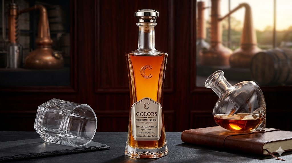 This tall slim 750ml glass liquor bottle is designed for premium spirits brands seeking a modern and elegant packaging solution.
