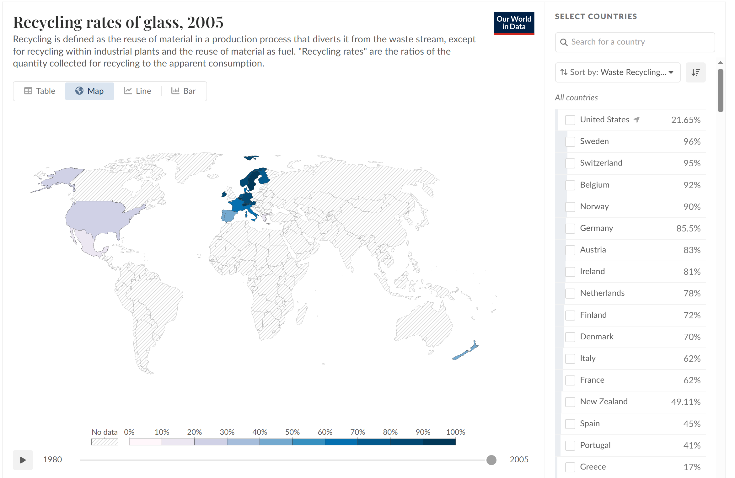 Our World in Data – glass recycling rates (interactive chart): https://ourworldindata.org/grapher/recycling-rates-glass