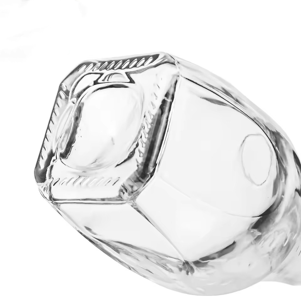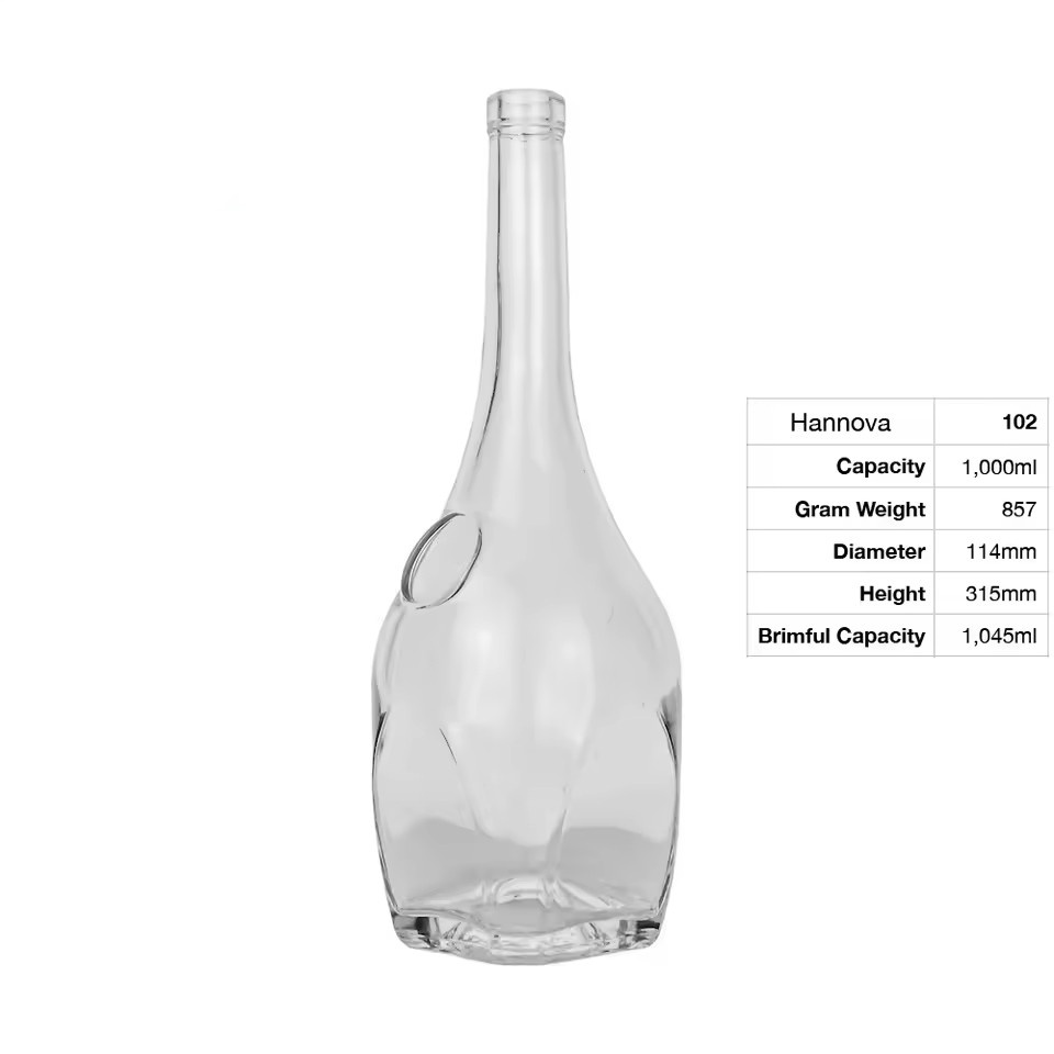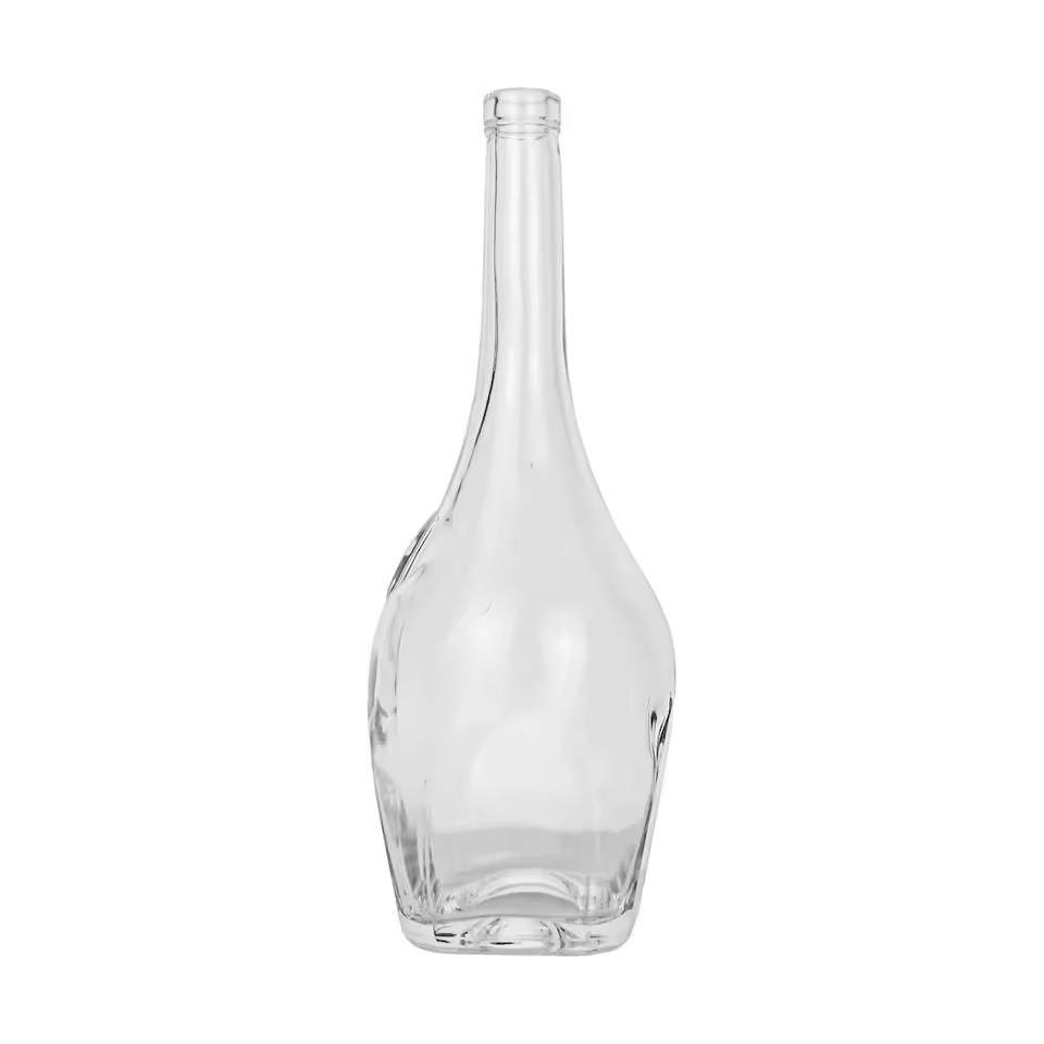 | Product: | 1000ml clear Super Flint Glass Curvilinear Glass Bottle With a Square Base and Mid-Section Circumferential Indentation Design |