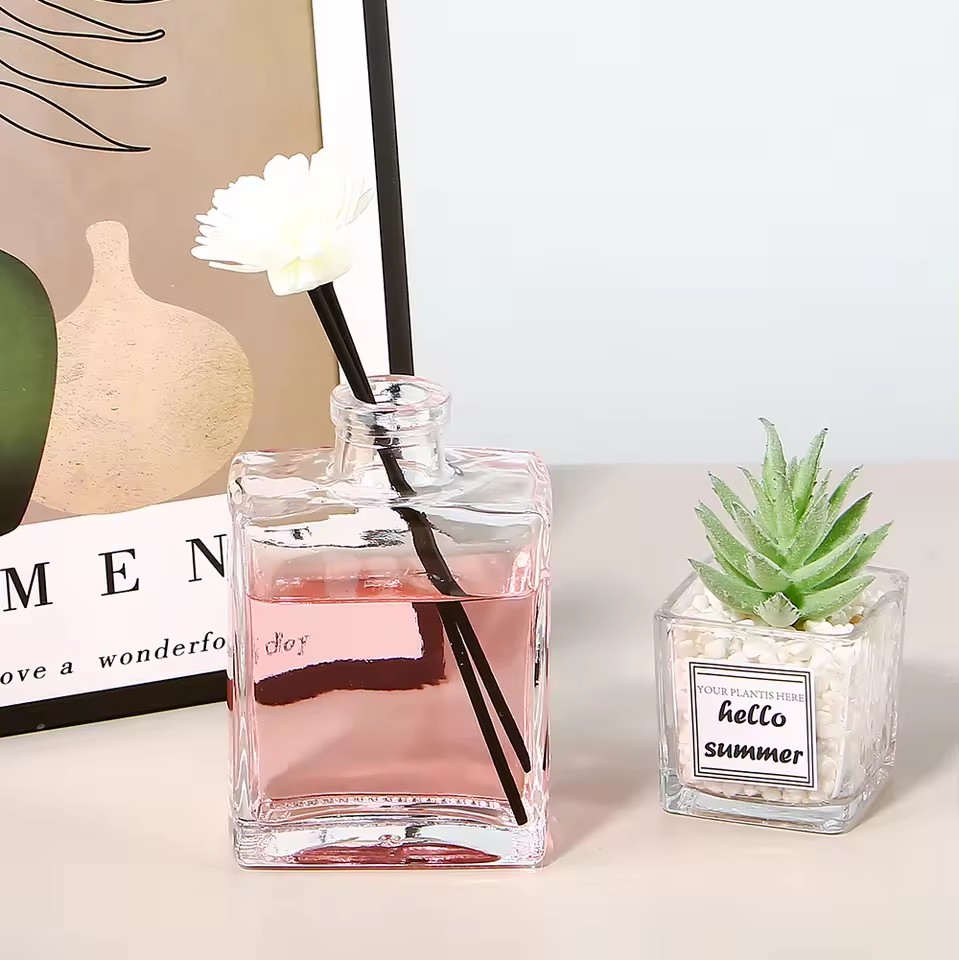 | Product: | 100ml 200ml Flat Cute Fancy Empty Luxury Room Perfume Reed Diffuser Glass Bottle with Cork Lids |