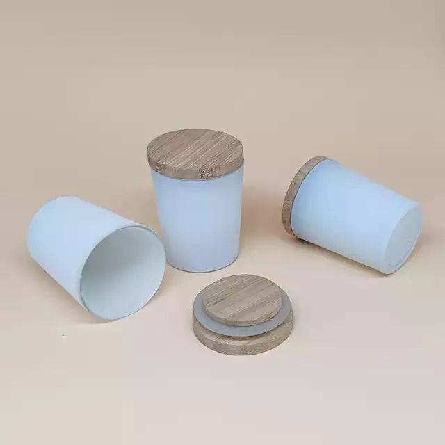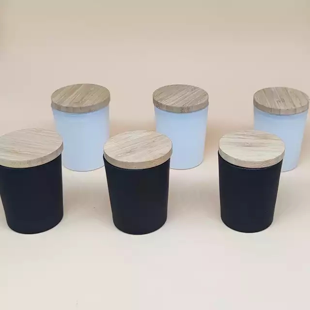 100ml candle making cups small frosted glass candle holder jar with wooden lid |