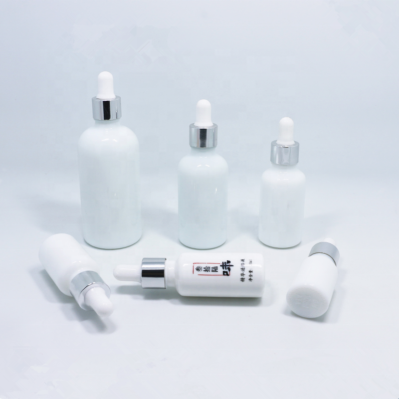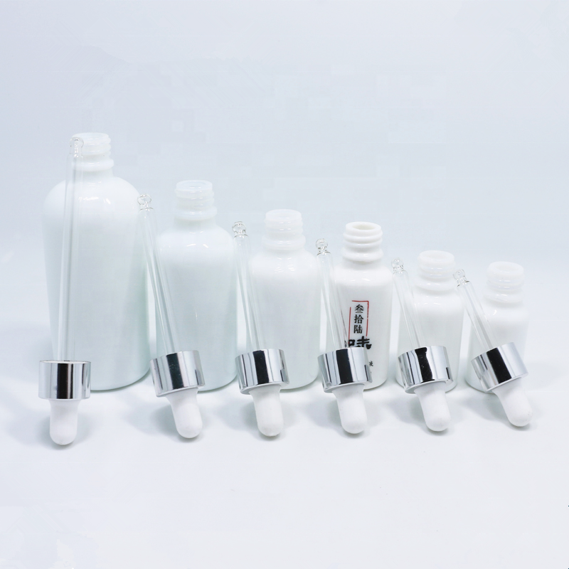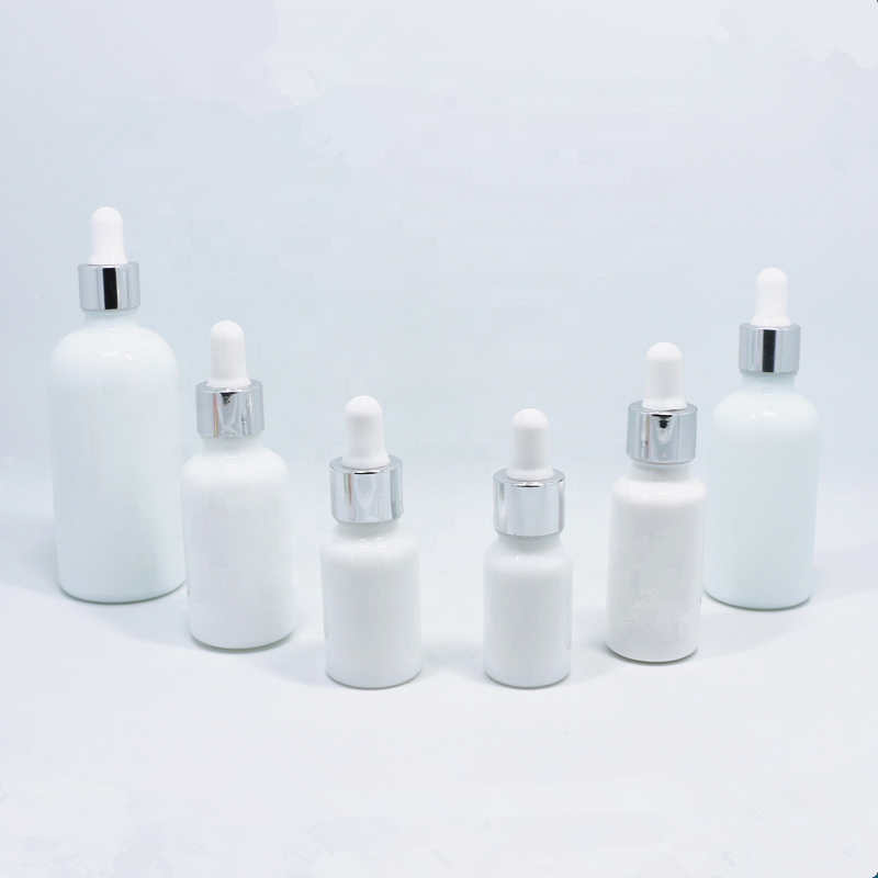 | Product: | 10ml 15ml 30ml 1 oz 50ml 100ml solid milk opal white glass dropper bottle with silver ring for serum essential oil cbd packaging |