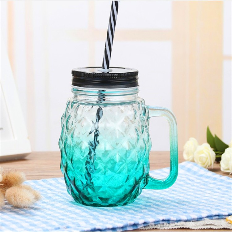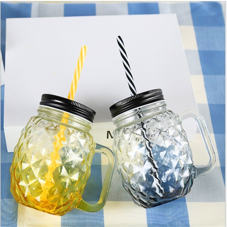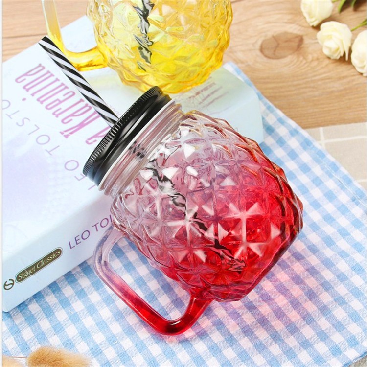 18oz 500ml Pineapple Shape Glass Storage Jar For Cold Juice Drinking Water With Handle And Cap |