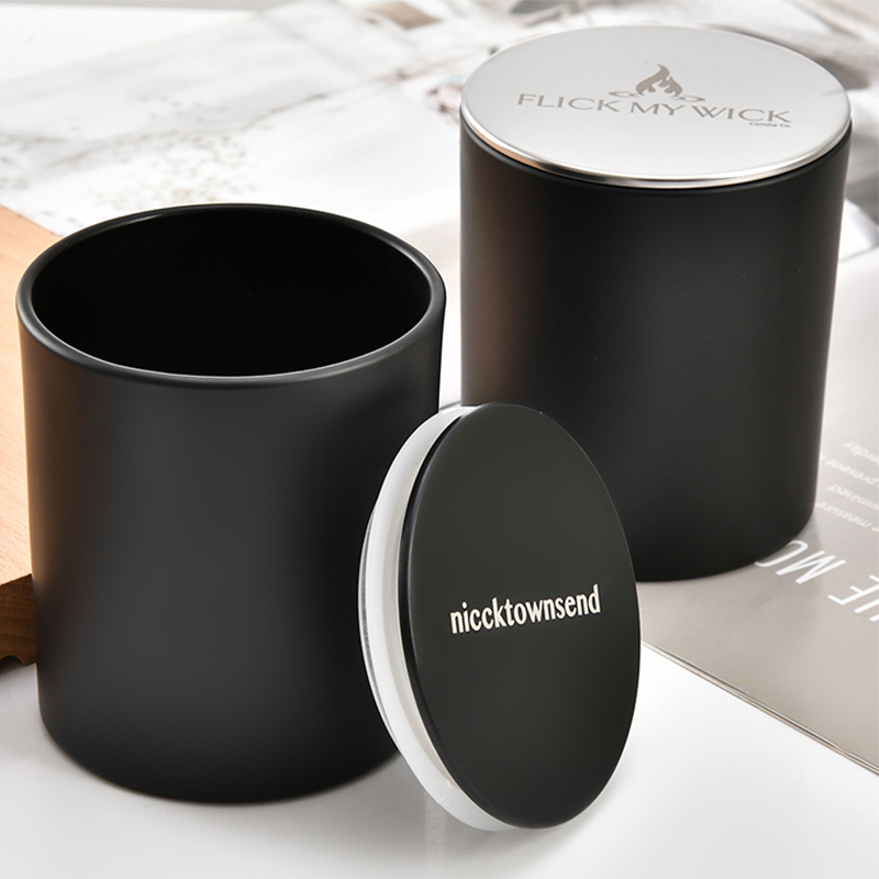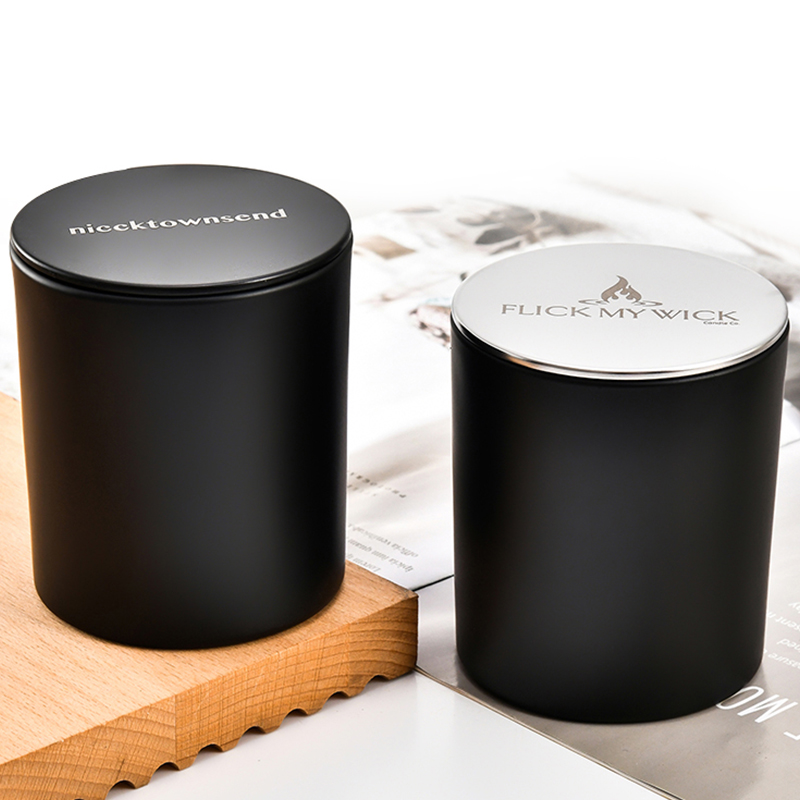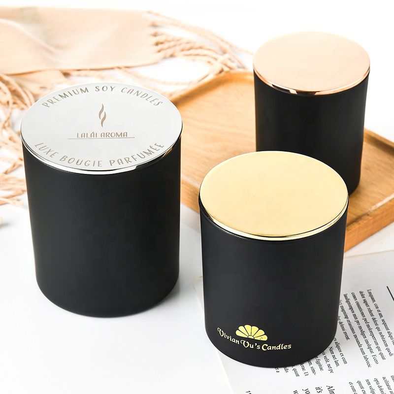 200 ml 320 ml 440 ml frosted black candle jar Glass candlestick for making candles Wood lid metal lid custom logo |