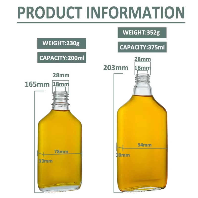 | Product: | 200ml 375ml Clear Glass Convex Liquor Hip Flask Bottle for Spirits |