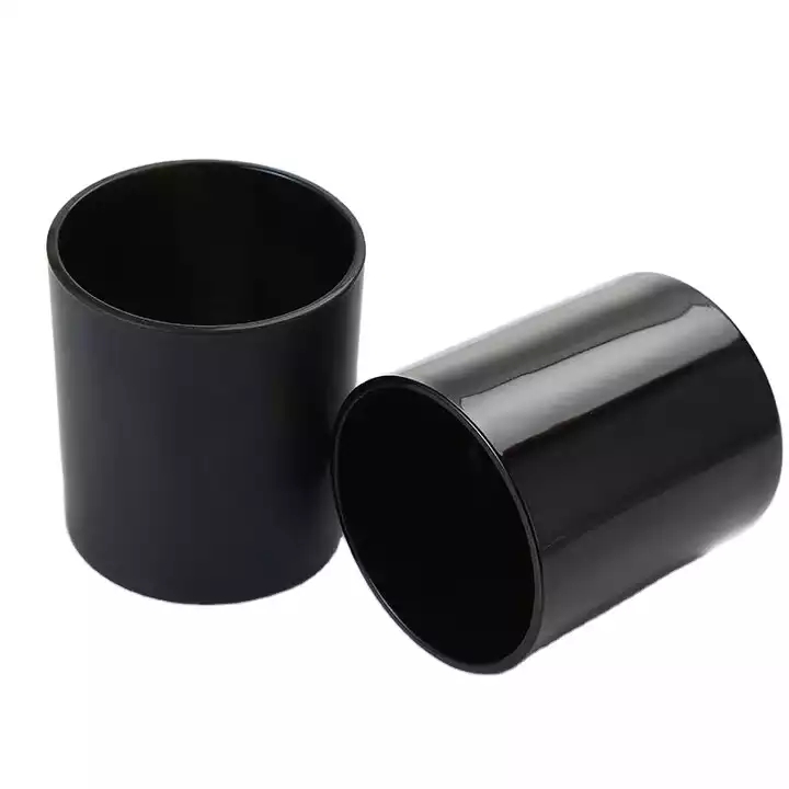 2021 hot sale 200ml 320ml 440ml glossy black white candle jar with air tight bamboo lid |