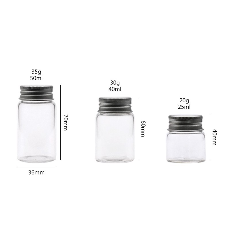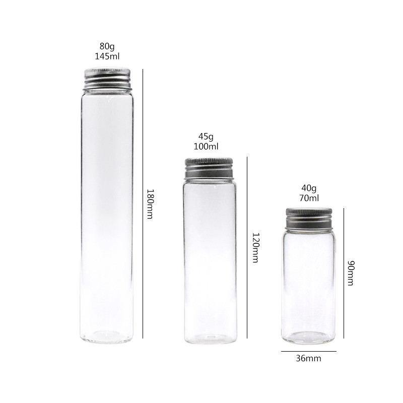 25ml 40ml 50ml 70ml 100ml 145ml Small Cylinder Borosilicate Glass Tube Bottle jar with Aluminum Cap for Candy |