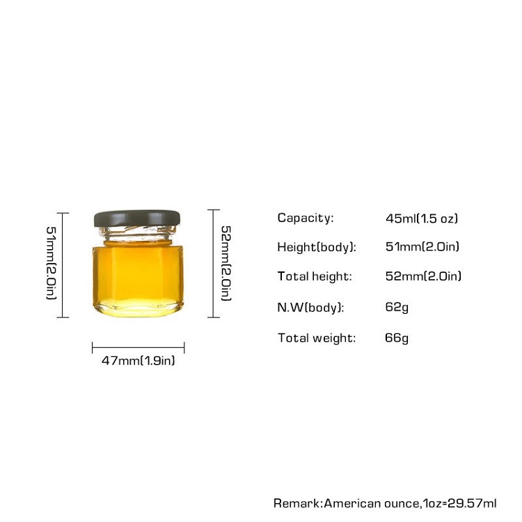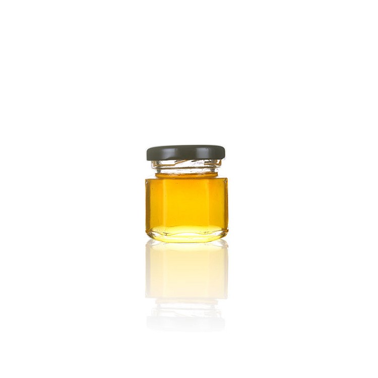 30ml 40ml 1 oz clear design unique hexagonal mini fancy glass honey jam jars with screw cap |