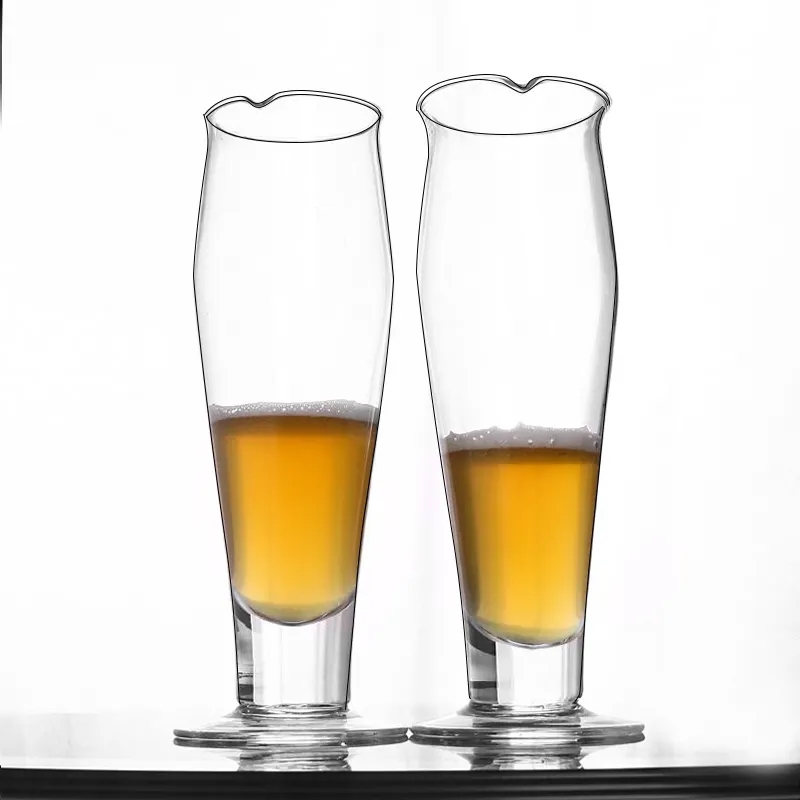 400ml Classical Mouth Blown clear beer glass with heavy base and spout glass beer stein with custom logo |