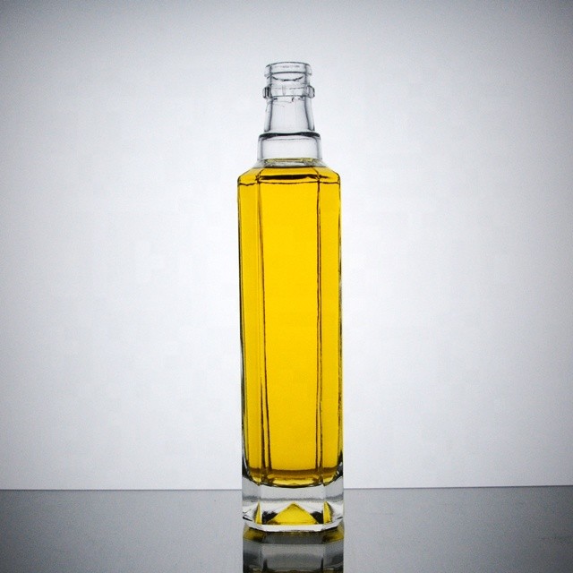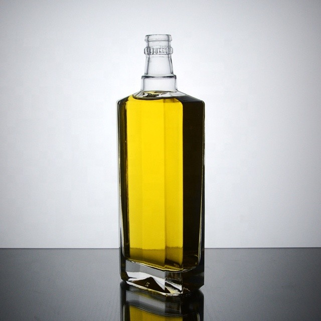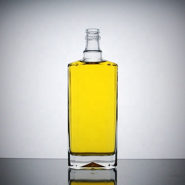 500ml empty clear embossed flat square glass liquor bottle for whisky vodka GIN |