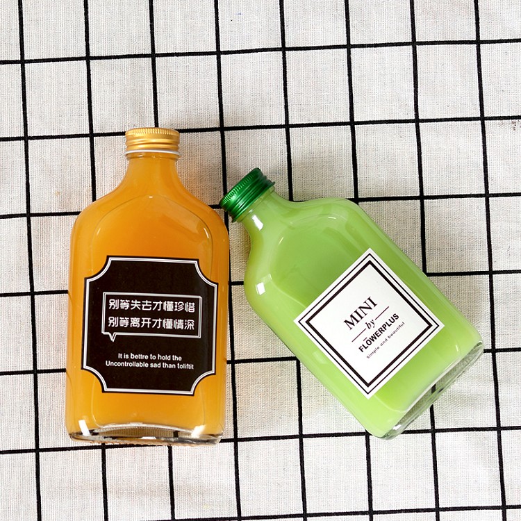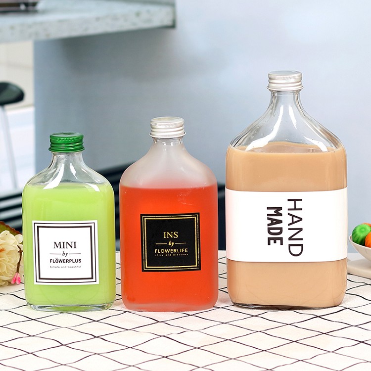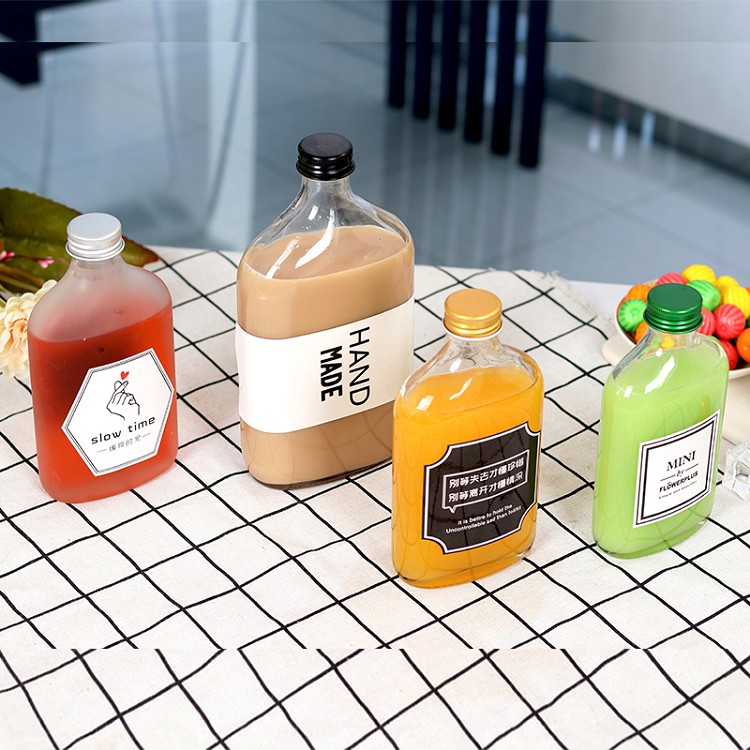 50ml 100ml 200ml 250ml 350ml 500ml Sealed reasuable drink juice milk coffee bottle glass flat fruit wine glass bottle with lid