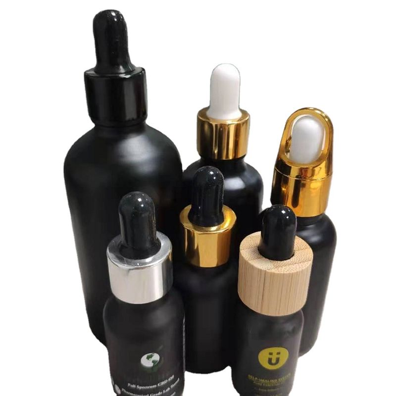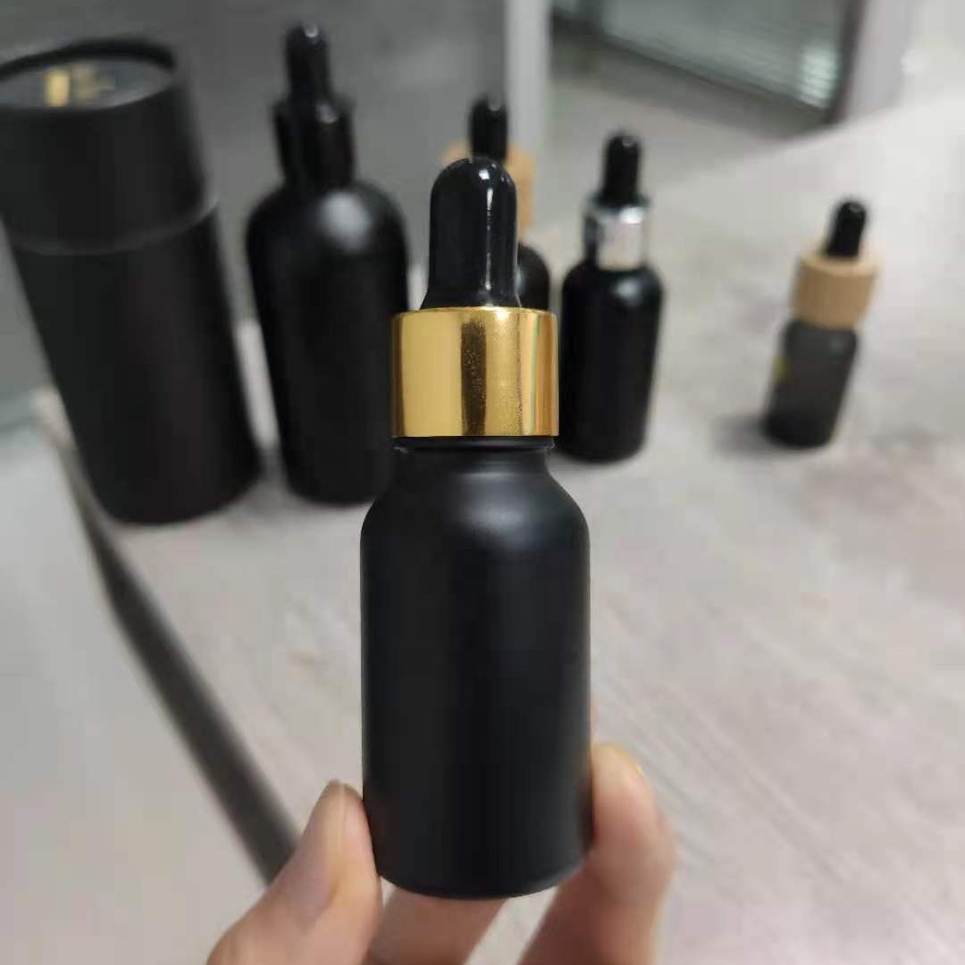 | Product: | 5ml 10ml 15ml 30ml 50ml 100ml empty matte black CBD serum glass essential oil dropper packaging bottle with paper tube |