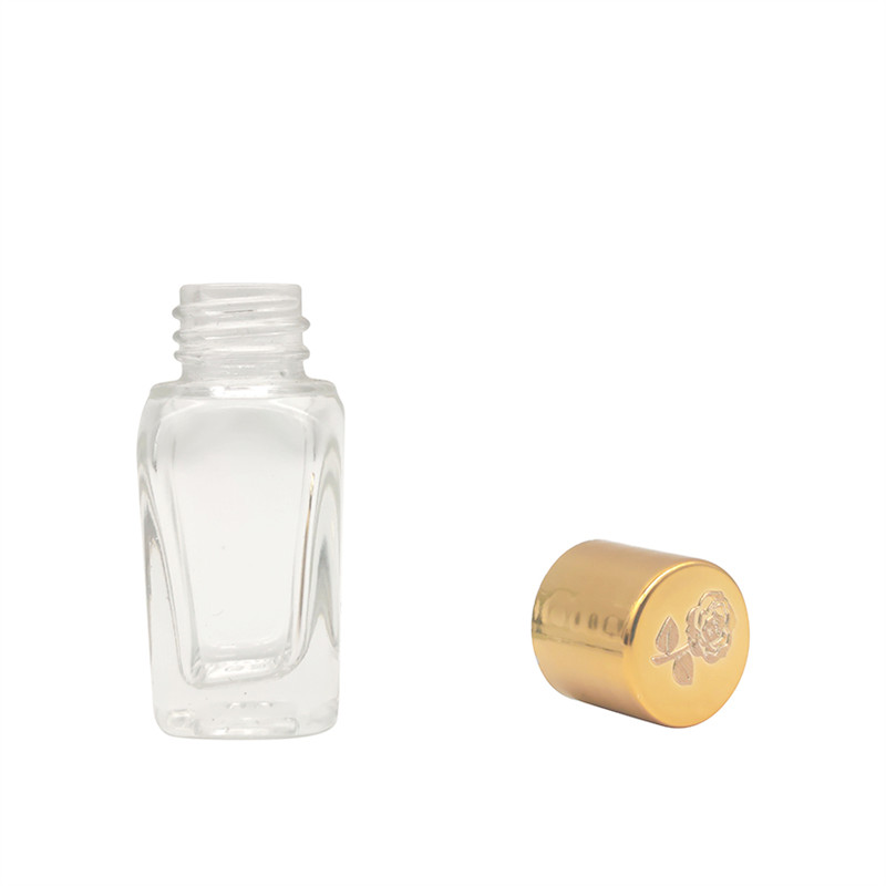 | Product: | 5ml clear square glass bottles for essential oil with luxury golden cap |