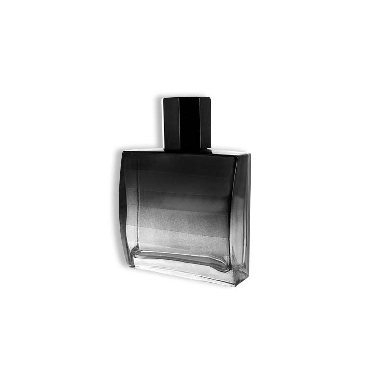 65ml black rectangular glass perfume bottle with black collar and cap |